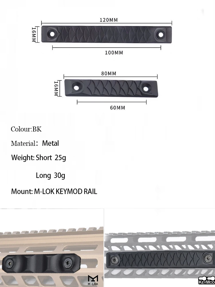 Panel de cubierta de riel táctico MLOK, aleación de aluminio, montaje de 80/120mm, M-LOK/Keyymod System, Kit de riel, accesorio de caza negro