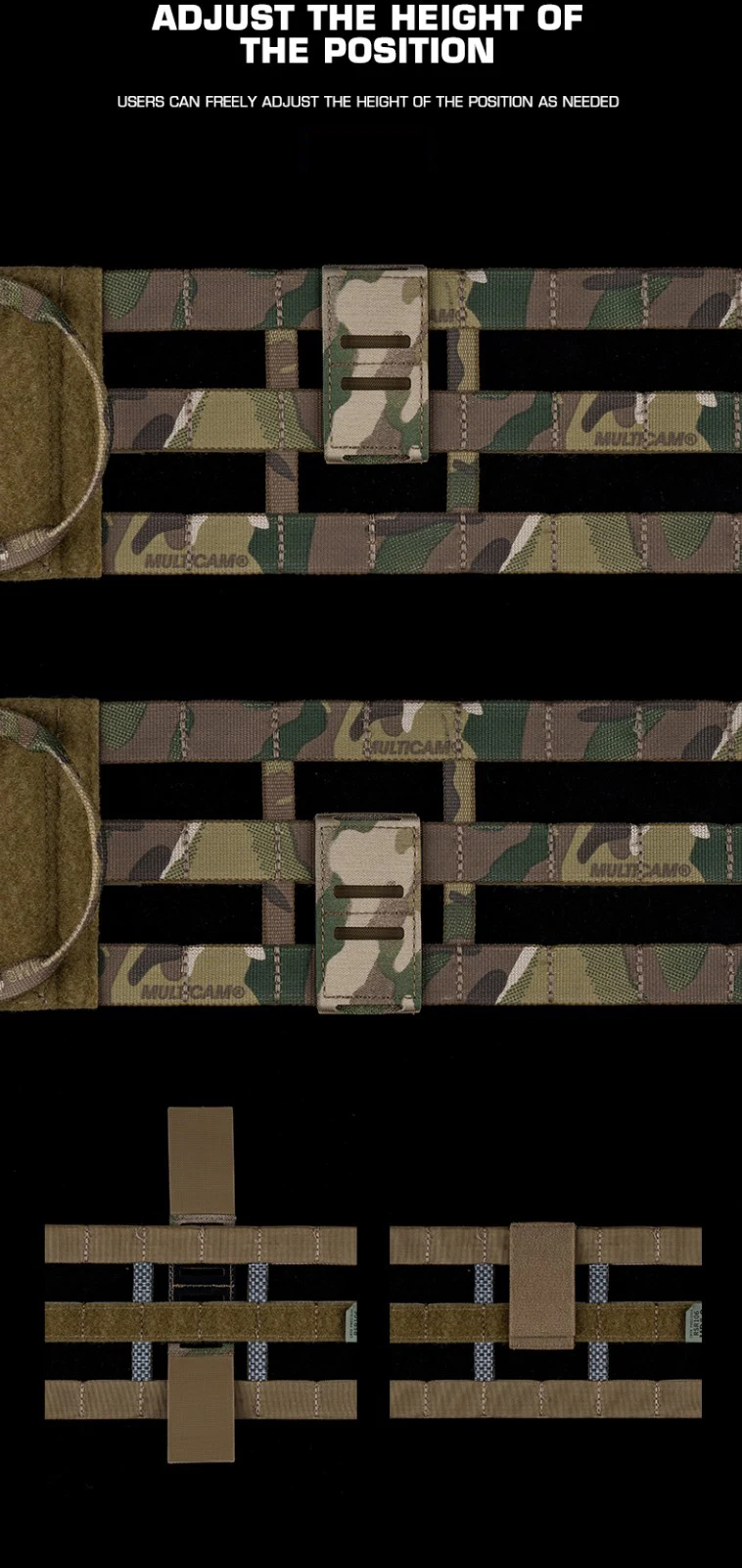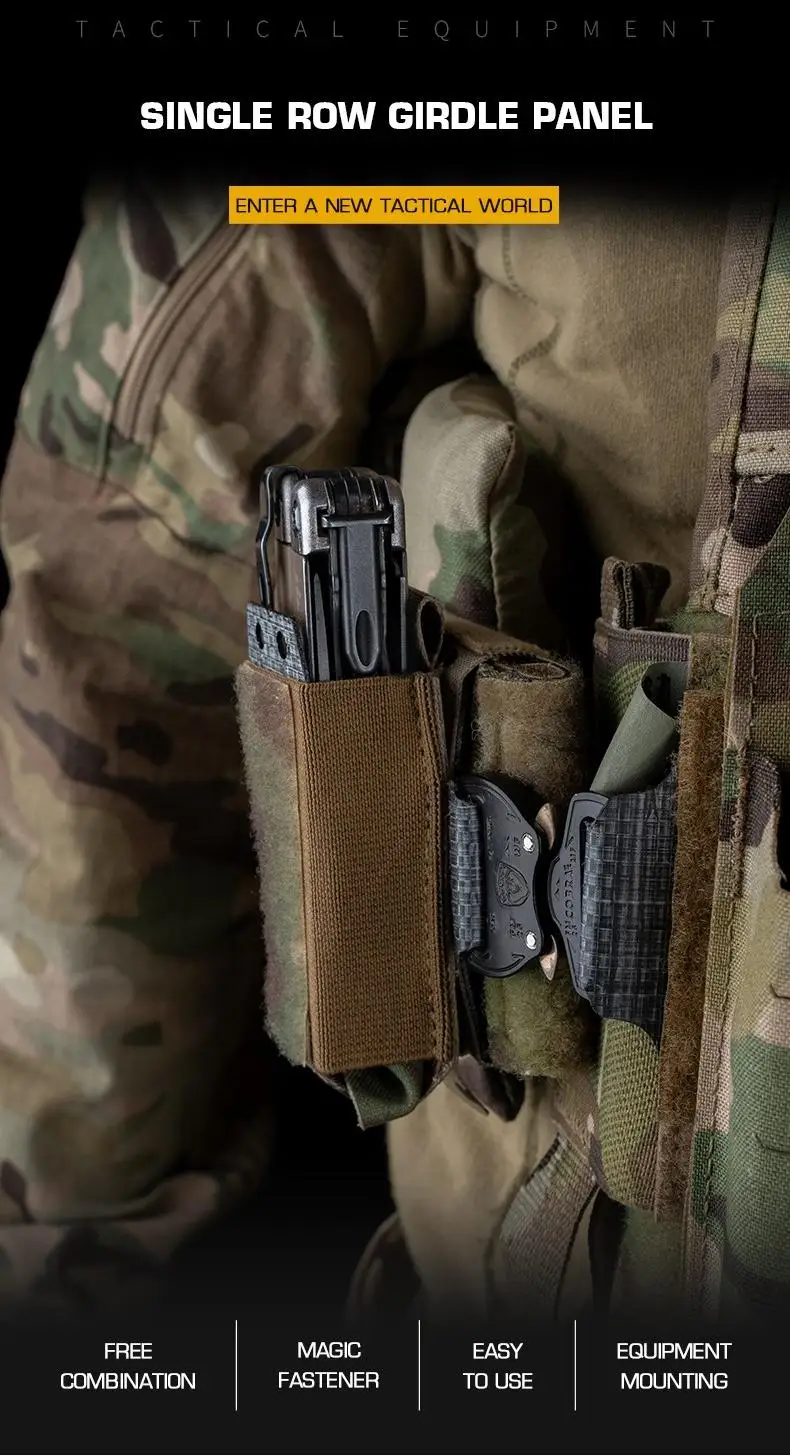 Panel de faja de una sola fila, bolsa Molle, bolsa para revistas, sistema de inserción de cuchillos, adaptador Molle de cinturón, paneles Molle extraíbles