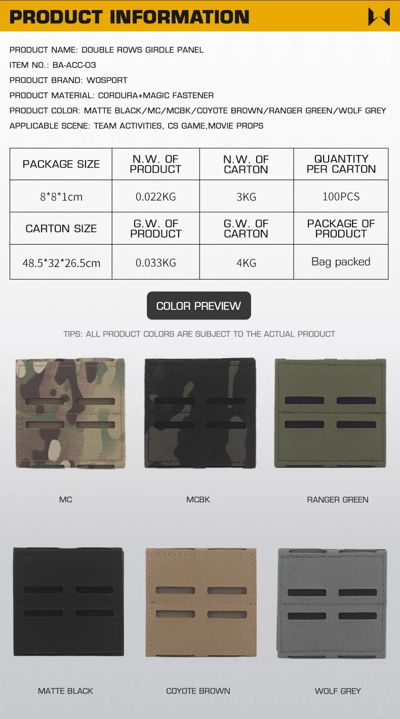Panel de faja táctica de doble fila, bolsa para revistas, cuchillos, sistema de inserción Modular, adaptador de cinturón, bolsa Molle Mag extraíble