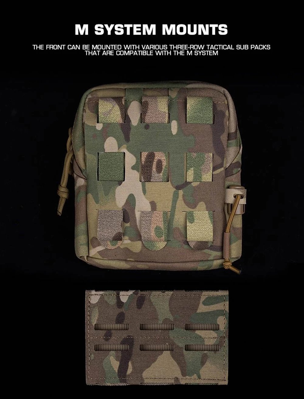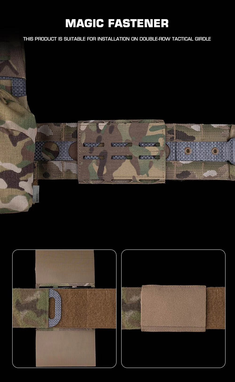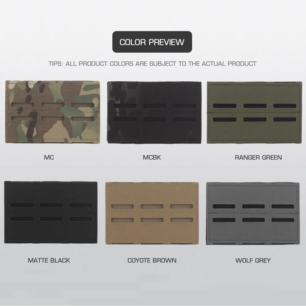 Nombre del producto: Panel de faja de tres filas Número de artículo.:BA-ACC-04 Tamaño del producto: 12*8*1 CM Peso neto del producto: 0,033 kg Peso bruto del producto: 0,044 KG Color del producto: negro mate/marrón coyote/verde racer/gris lobo/MC/MCBK. Material principal: cierre mágico Cordura Escena aplicable: caza, deportes al aire libre y otros accesorios tácticos de atletismo Airsoft CS, etc.