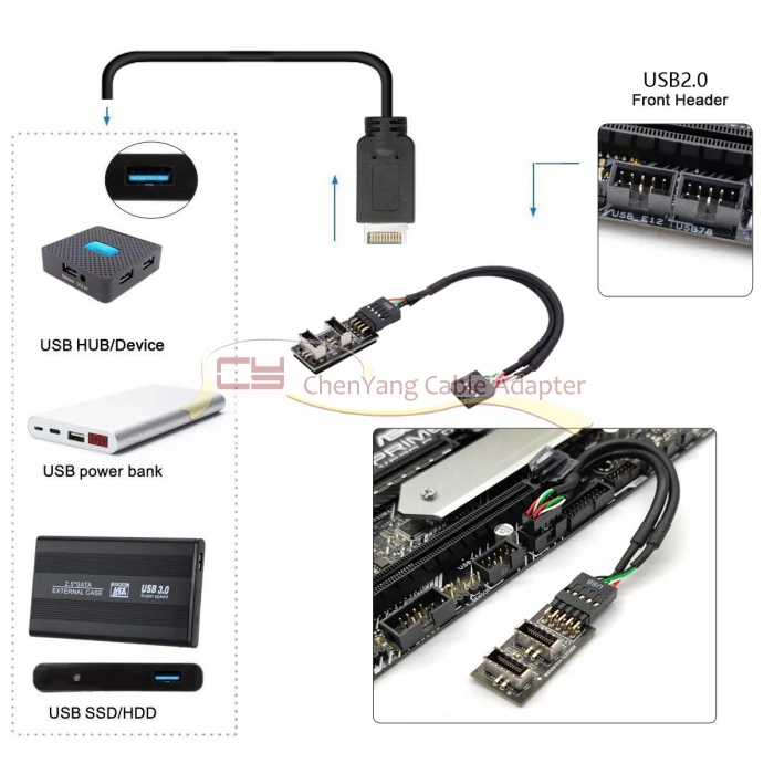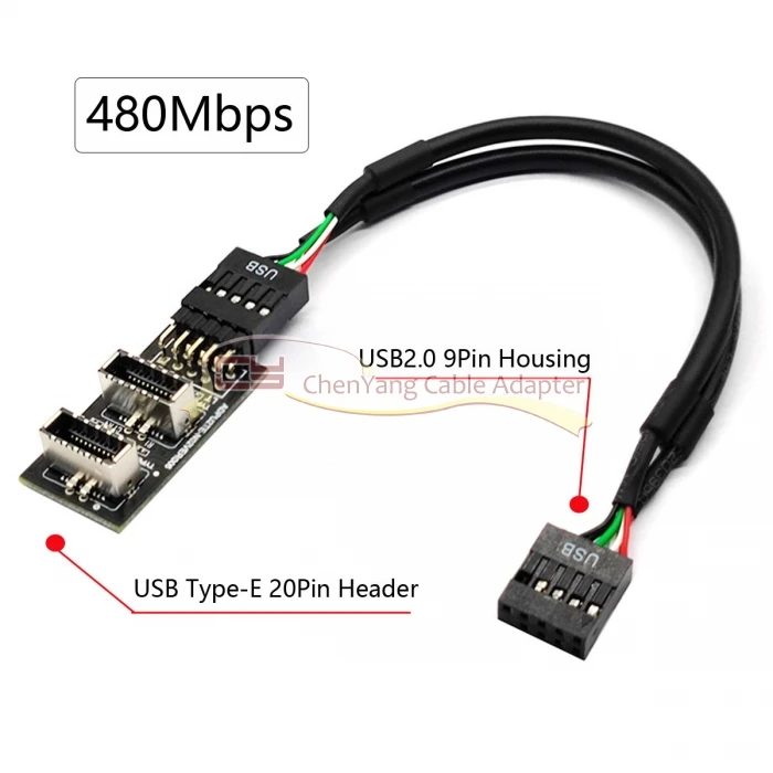 Dual USB 3,1 Panel frontal Socket Key-A Tipo-E a USB 2,0 9Pin 10Pin Mainboard Header Adaptador de extensión de cable macho