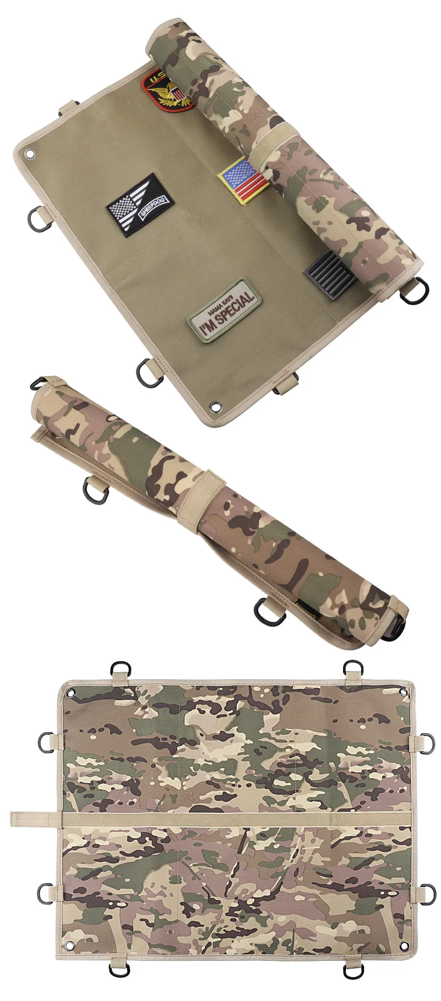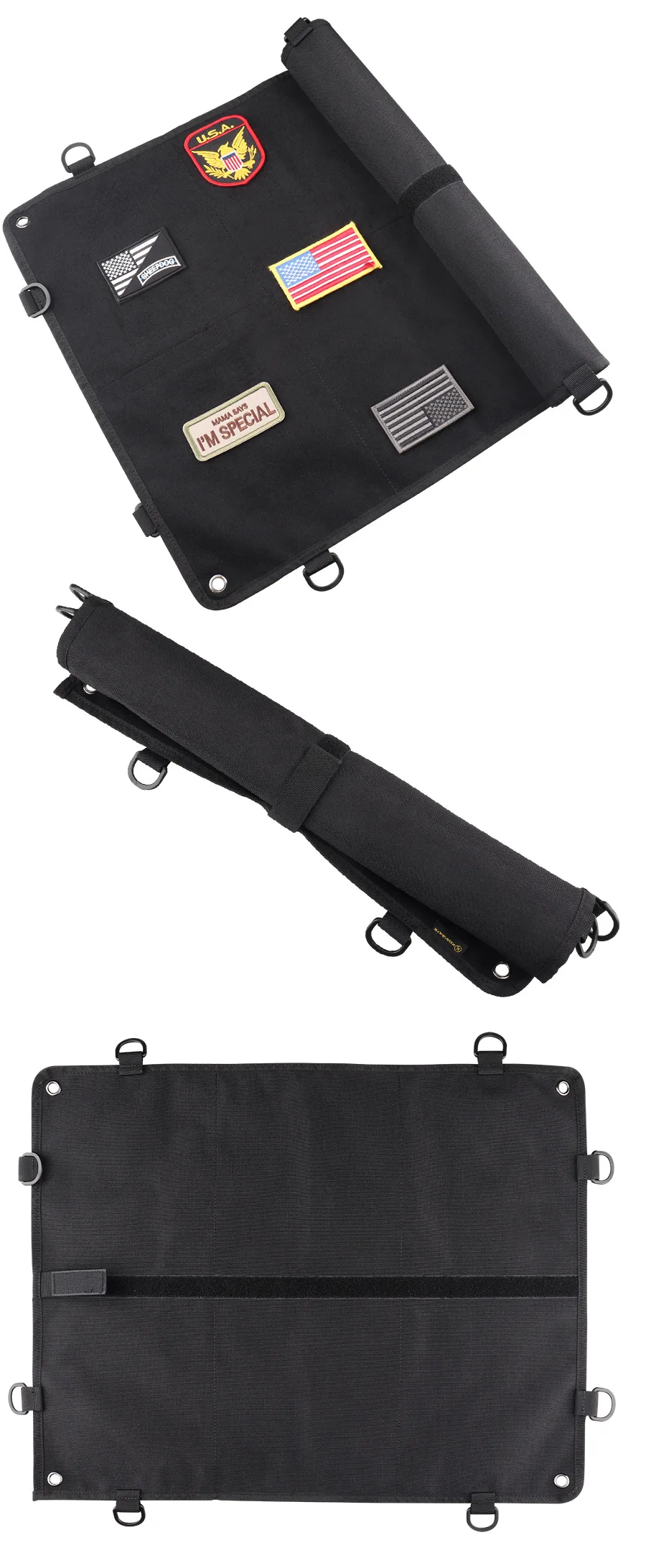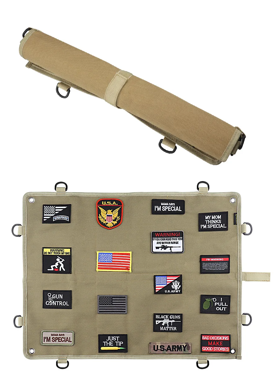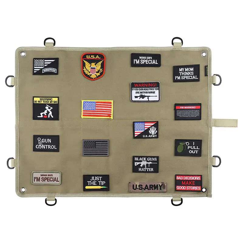 Panel de parche de moral táctica, superficie de bucle de gancho grande de 24 "X 18", respaldo balístico, anillos en D de 360 grados para exhibición, parches de identificación militares