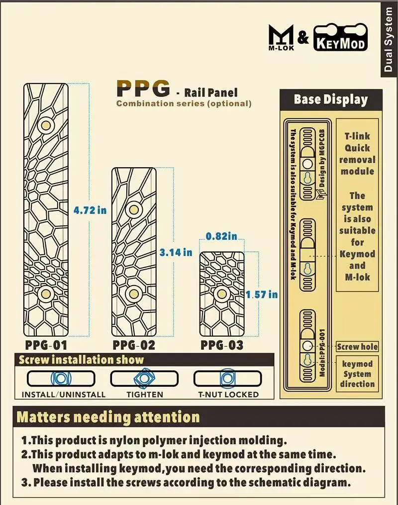 Cubierta de riel de espina de pescado de nailon con estampado de pitón - Tira protectora de madera KEYMOD y M-LOK para rifle SLR, adaptador táctico de perfil bajo