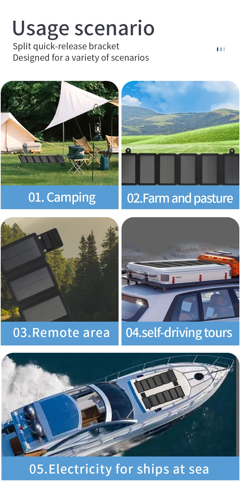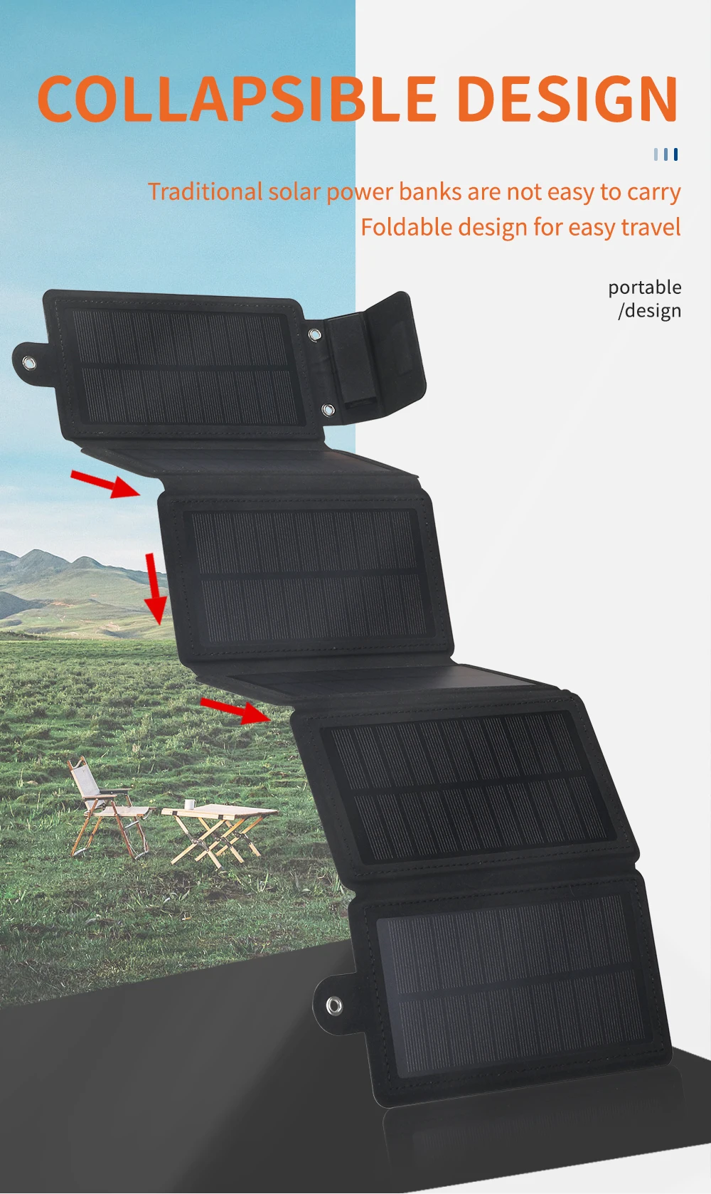 1. Adecuado al aire libre para montañismo, senderismo y áreas donde la electricidad es escasa. Donde hay sol, hay electricidad.