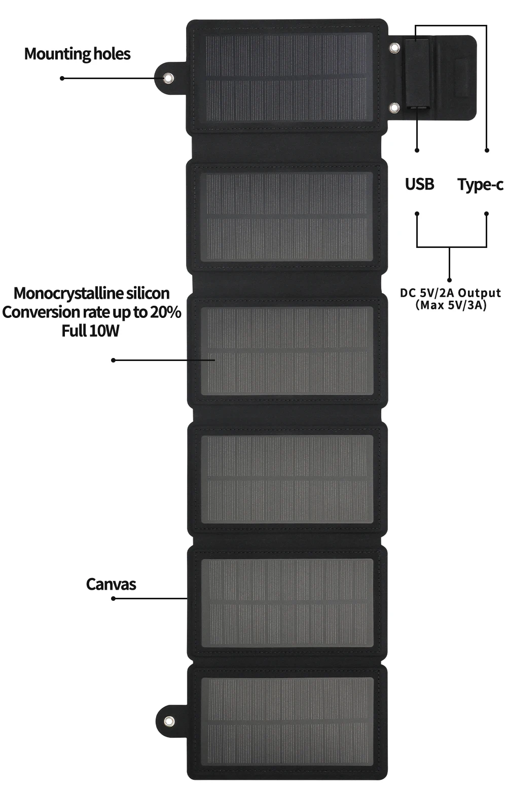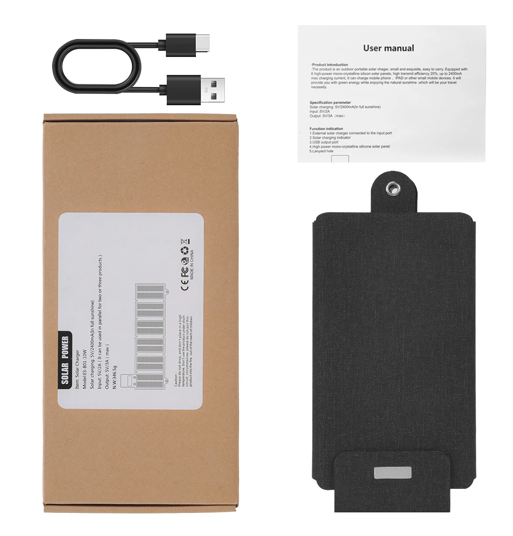 Panel Solar plegable de 10W, 5V, carga rápida, salida Solar USB tipo C, teléfono móvil portátil, cargador de batería para acampar al aire libre y turismo