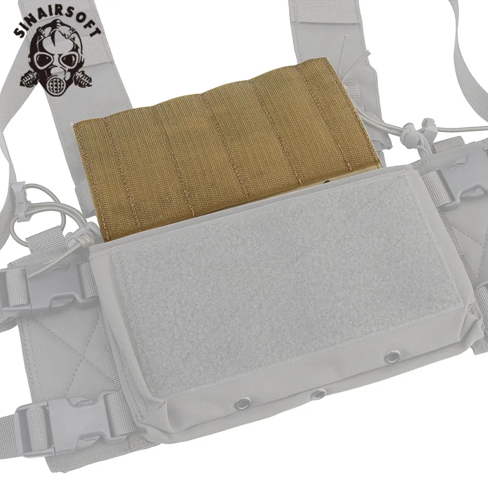 (1) Se bloquea en el bolsillo delantero del aparejo de pecho de Micro Fight para evitar que las bolsas y otros artículos sean arrancados del frente de Micro Fight.