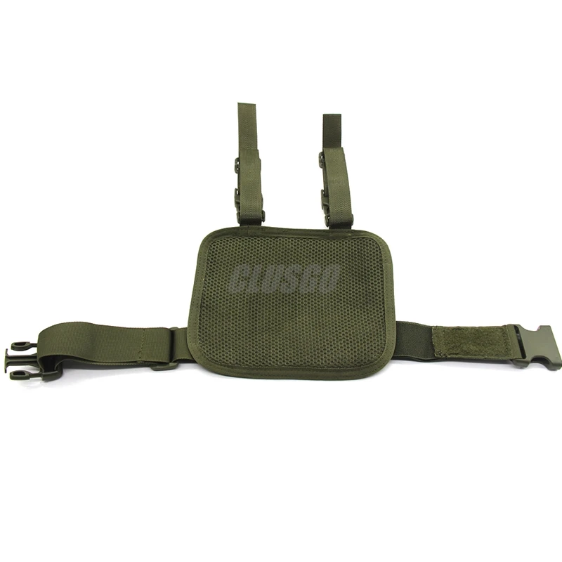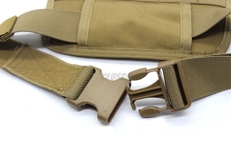 Dos correas para conectar el cinturón; Correas de pierna con hebillas de liberación rápida, se pueden usar atadas a la pierna o unidas a la cintura a través de un cinturón (cinturón táctico incluido), las correas de las piernas son totalmente ajustables y extraíbles.