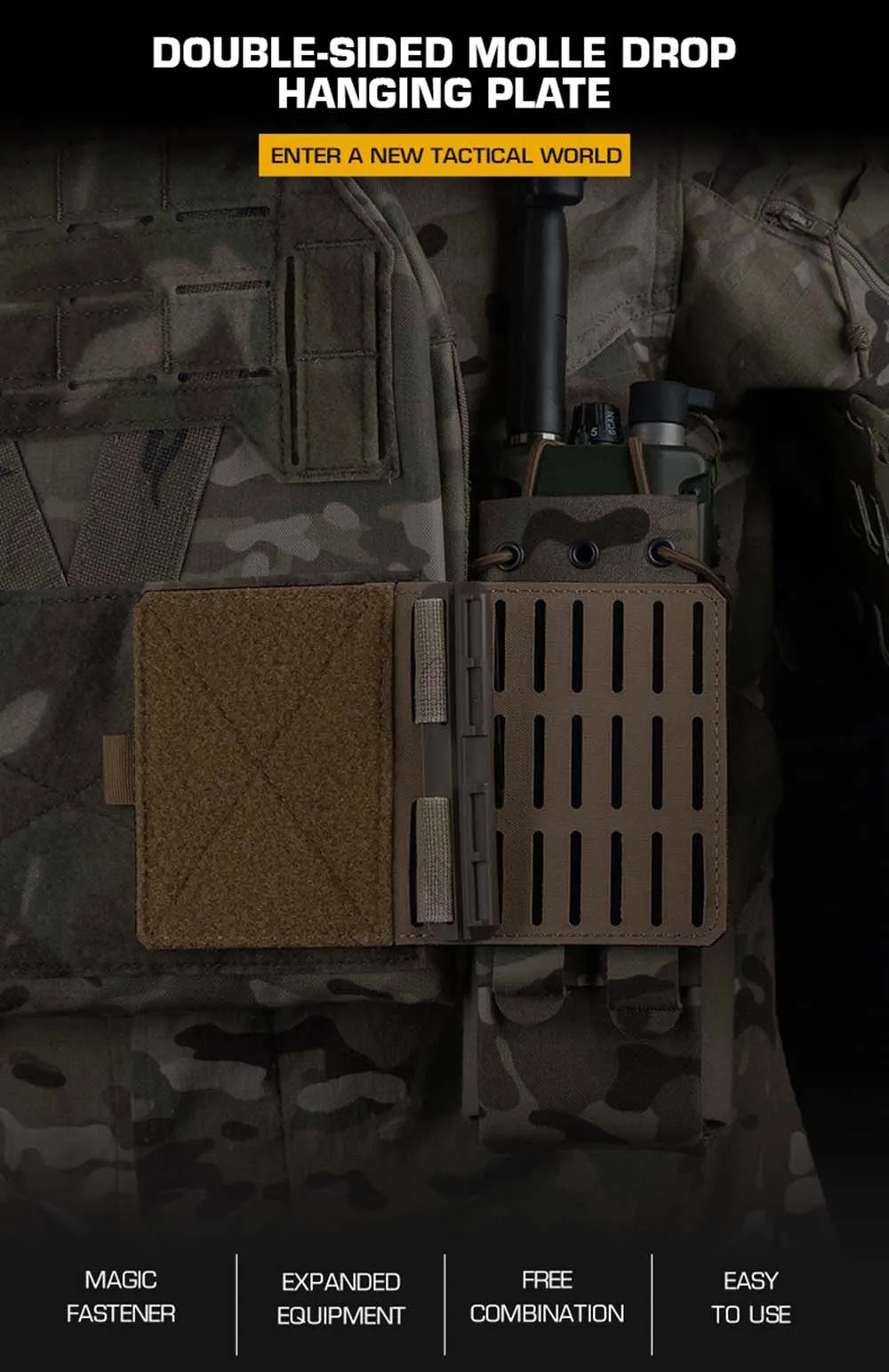 Panel táctico MOLLE, placa colgante Universal de doble cara, portador de alas laterales, bolsa para revistas, soporte para Radio, bolsa de caída, equipo colgante