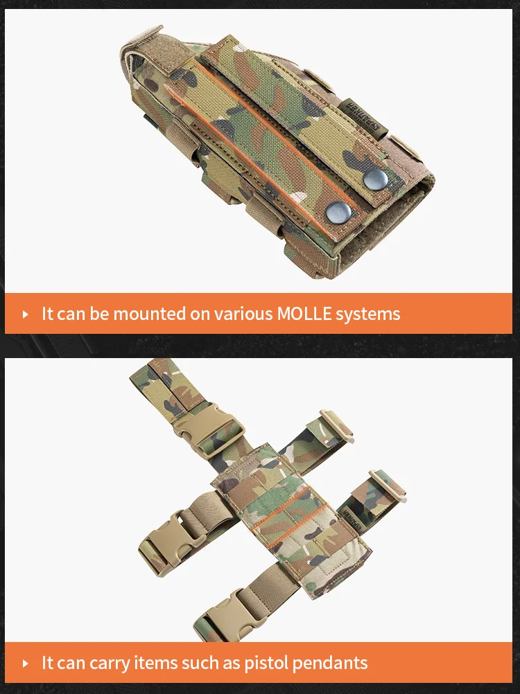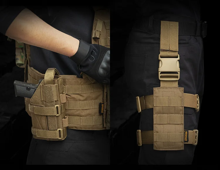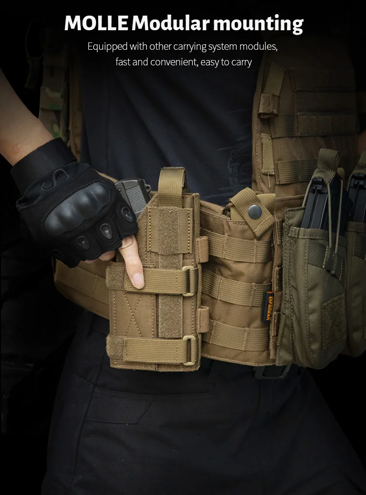 Funda de pistola Molle Belt, se puede colgar en el equipo con módulo Molle, chaleco táctico, mochila, cinturón, etc. En cualquier situación táctica, proporciona una excelente flexibilidad y seguridad.