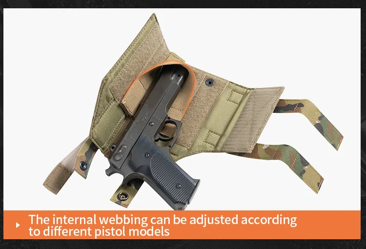 Gran espacio interior. La funda de pistola Molle, se puede poner el arma con linterna por la pegatina mágica ajustable. Tamaño de la funda de pistola: 7,5*4 pulgadas.