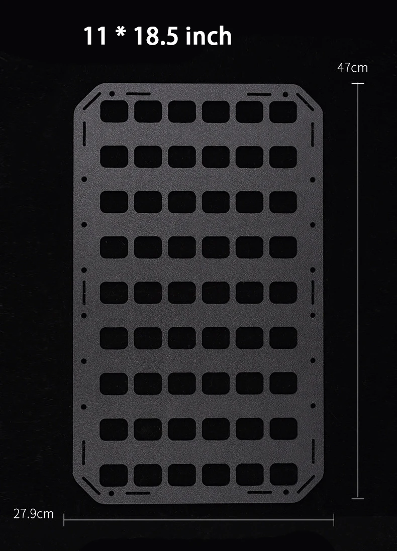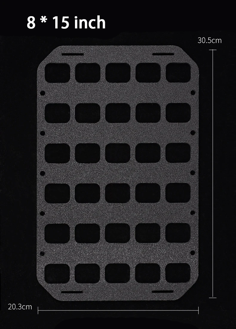 ③ El panel de inserción molle se puede utilizar en una mochila o estuche táctico cuyas dimensiones internas deben serIgual o superior a 11 "de ancho x 18,5" de alto.