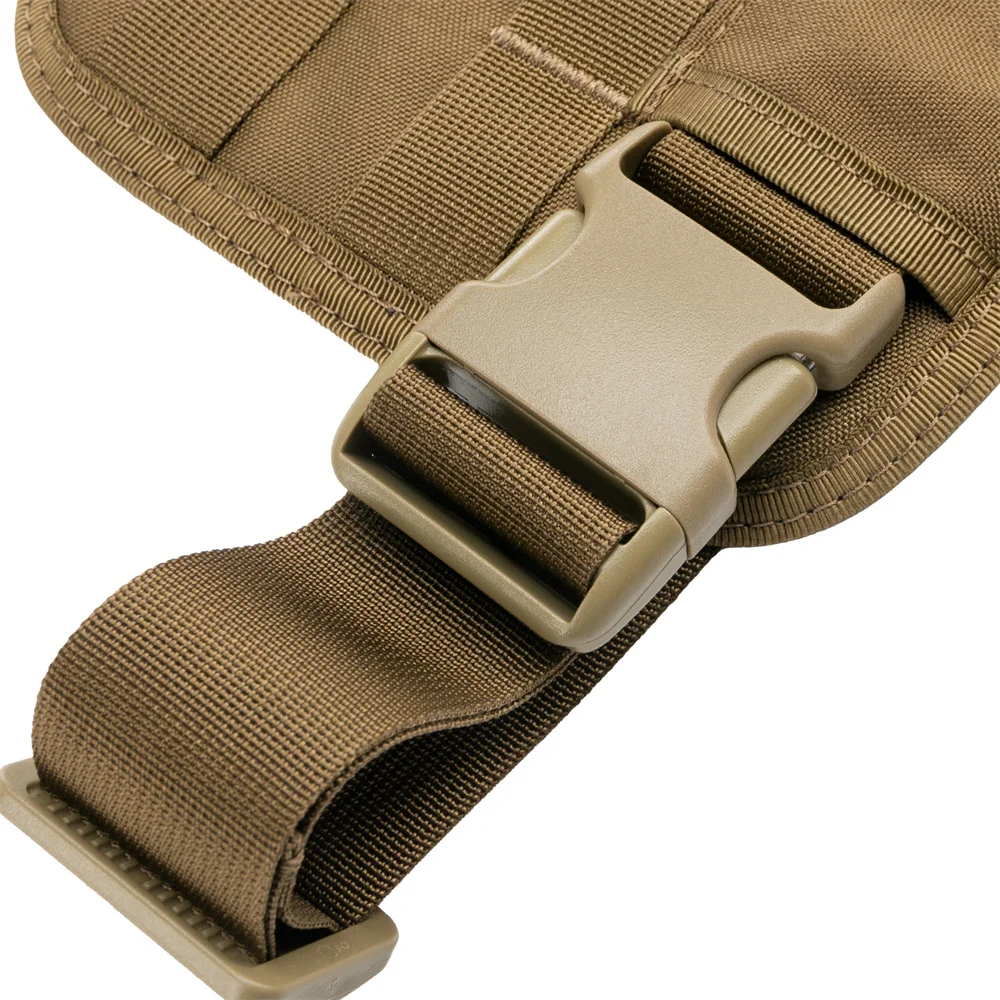 El panel de velcro permite que la correa del muslo ajuste la posición de acuerdo con su favorita, la cinta de nailon se puede ajustar para adaptarse a los muslos de cualquier persona, el desmontaje rápido de la hebilla de liberación.
