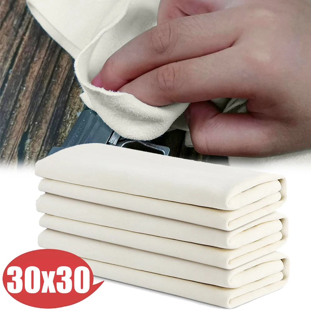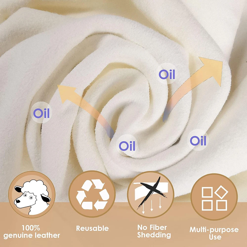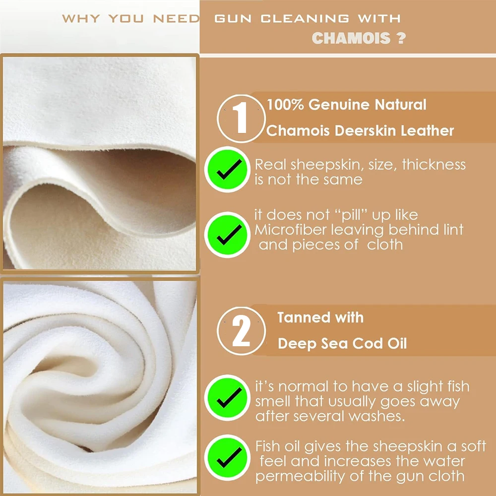 Paño limpiador Chamois Gun fabricado 100% con piel de oveja auténtica.El cuero tiene un poco de olor a pez, que también sirve para identificar el cuero real.