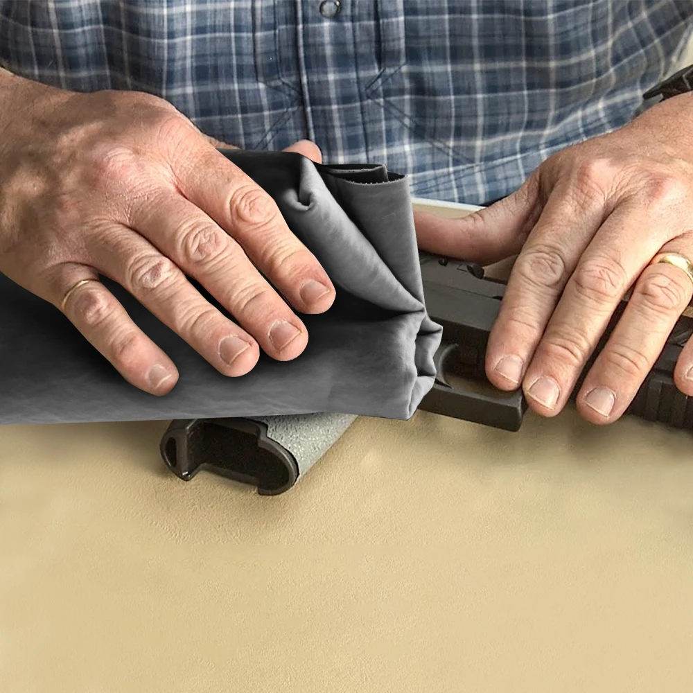 3.【Sin rayones y sin pelusa】 Nuestro paño para armas tiene una textura suave, suave en ambos lados, el material no abrasivo no dañará ni siquiera las áreas sensibles de un arma de fuego.Funciona muy bien para eliminar las huellas dactilares y manchas visibles de la pistola sin dejar pelusas ni residuos, también para lubricación sin pelusa y otras aplicaciones.
