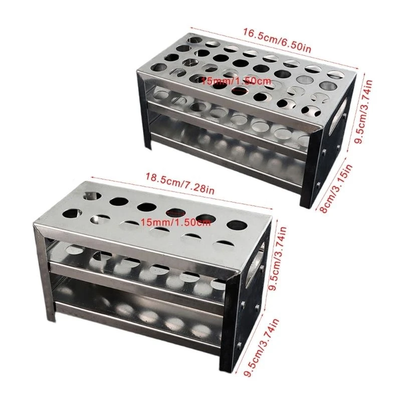 Perfecto para su uso en laboratorios escolares, instituciones de investigación y entornos industriales, este soporte para tubos de ensayo respalda diversas necesidades experimentales con su construcción versátil y resistente.