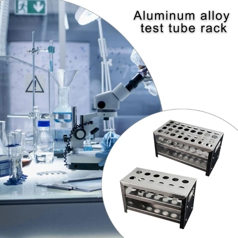 Fabricado con aleación de aluminio, este soporte para tubos de ensayo presenta un fuerte diseño de tres capas que mejora la estabilidad y evita que los tubos de ensayo se tambaleen, ideal para laboratorios profesionales y experimentos domésticos.
