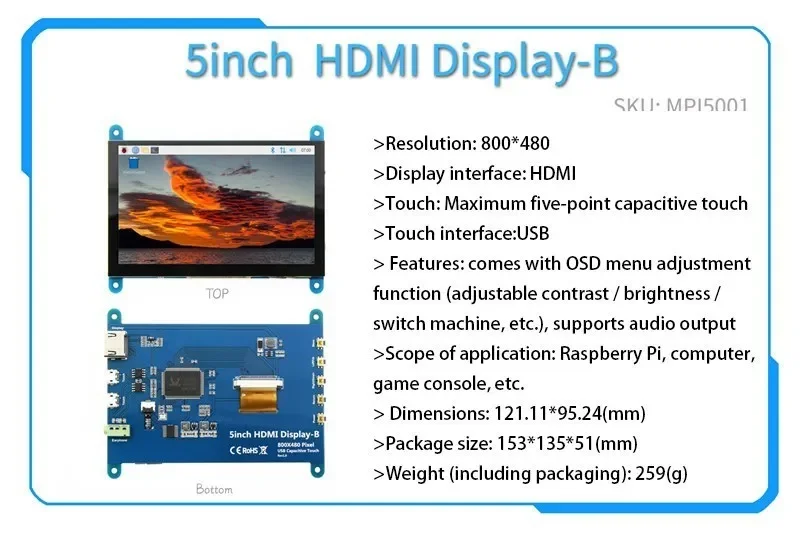 Cuando se utiliza como pantalla Raspberry Pi, admite sistemas como Raspbian, Ubuntu y WIN10 IOT.Cuenta con un solo toque y no tiene controlador.