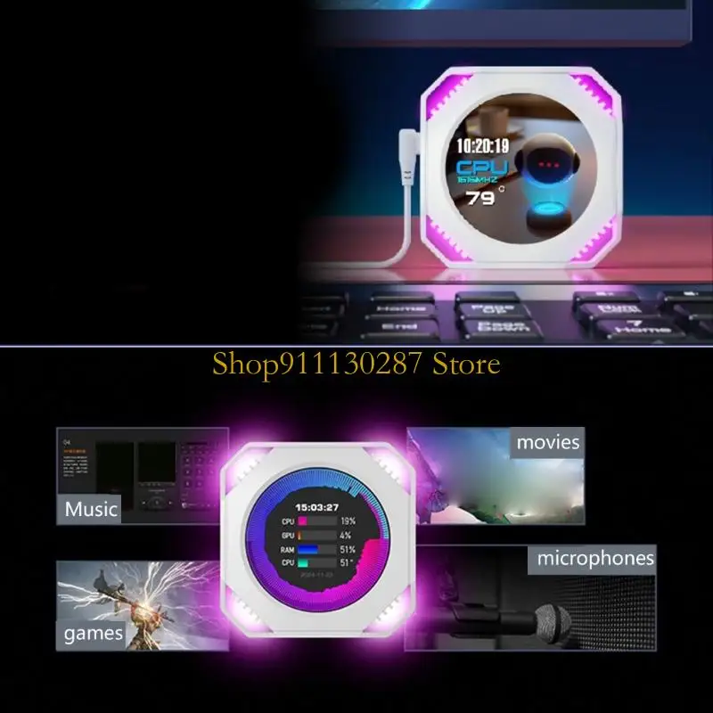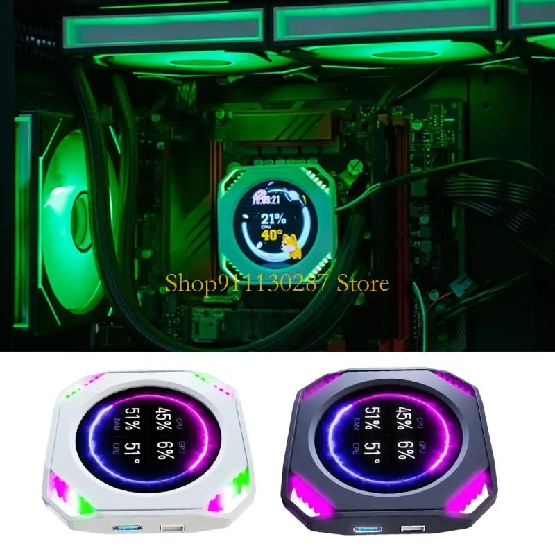 Características:OOTDTYEsta pantalla secundaria IPS de 2,1 pulgadas simplifica el monitoreo de la PC con alimentación de un solo cable USB C y transmisión de datos, seguimientos de temperatura de CPU/GPU en tiempo real e iluminación ARGB programable para equipos refrigerados por agua de bricolaje.