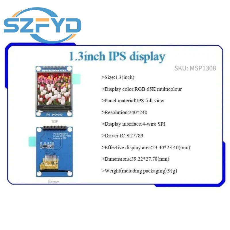 Pantalla TFT en color de 1,3 pulgadas Módulo de pantalla LCD IPS de alta definición Chip 240x240 ST7789
