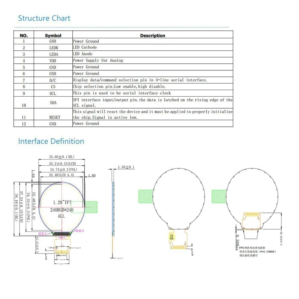 Descripción:- Es una pantalla LCD IPS de 1,28 pulgadas 240*240.