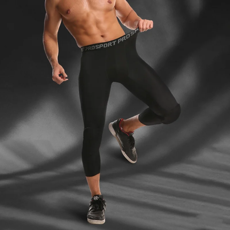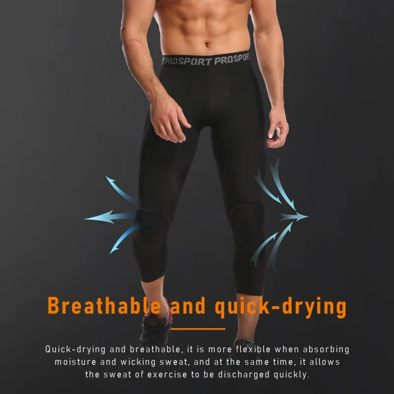 Nuestros pantalones de baloncesto con rodilleras tienen un diseño dos en uno para mallas de compresión y rodilleras para pelotas de baloncesto.