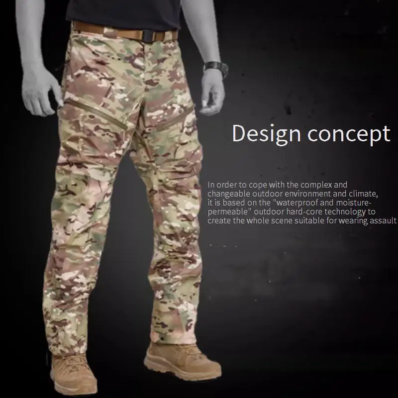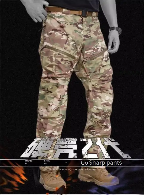 Pantalones de asalto Ninja 2nd Hard Shell para hombre, pantalones de senderismo tácticos con cremallera lateral impermeables, pantalones largos de camuflaje para exteriores para Otoño e Invierno