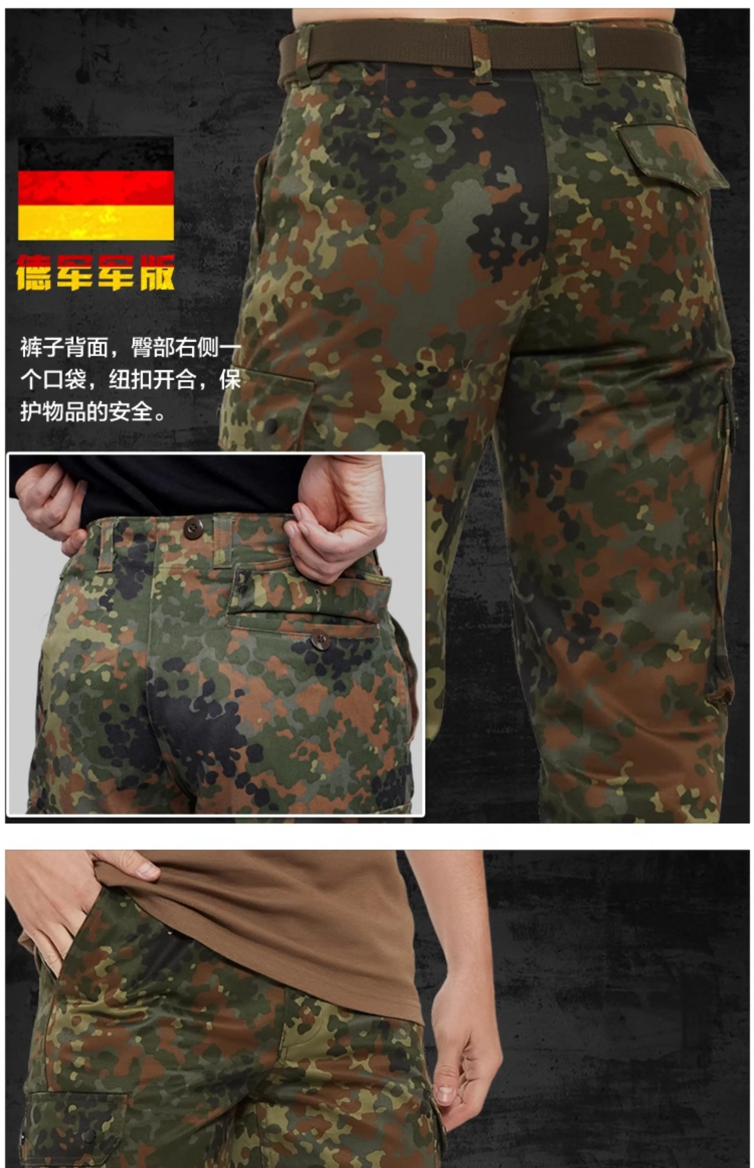 Pantalones de camuflaje tácticos alemanes, pantalones manchados, pantalones de entrenamiento para fanáticos del ejército, monos para exteriores para hombres