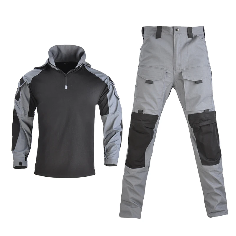 Material:Característica:Camisas:1. Transpirable y transpirable sin calor sofocante2. Tejido elástico para un movimiento sin restricciones3. Ajuste de velcro4. Diseño de cordón con capucha5. Conexión de cremallera de sombrero, desmontable6. Refuerzo de tela de doble capa en el codo para una mayor resistencia al desgaste7. La cremallera YKK es duradera y suavePantalones:1. Hebilla de cinturón ajustable + cinturón con puños ajustables de velcro2. Diseño colgante lateral, fortalece la carga3. Diseño de cadera reforzado para una mayor durabilidad