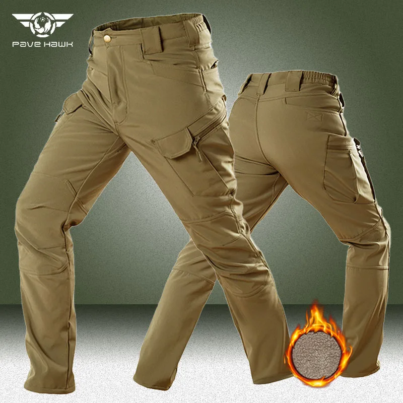 Pantalones Cargo cálidos de forro polar para hombre, pantalón militar de piel de tiburón, Pantalones rectos de concha suave para exteriores, pantalones impermeables con múltiples bolsillos del ejército, Invierno