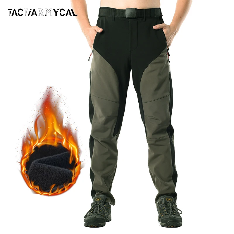 Pantalones Cargo informales de invierno para hombre, pantalones gruesos cálidos de lana para esquí, pesca, senderismo, escalada, impermeables, pantalones de concha suave