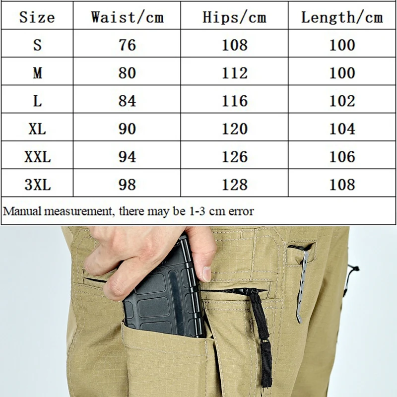 Pantalones Cargo tácticos para hombre, pantalones informales impermeables con múltiples bolsillos, resistentes al desgaste, al aire libre para senderismo, correr, monos caqui
