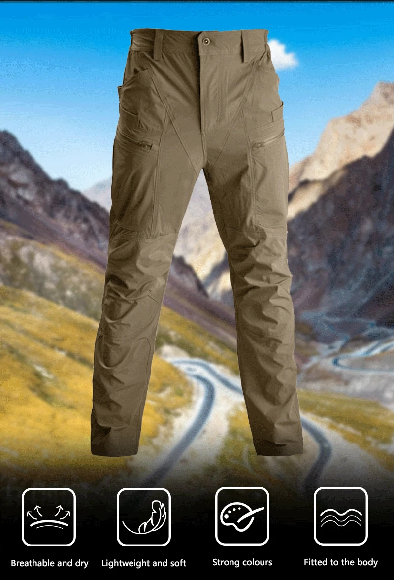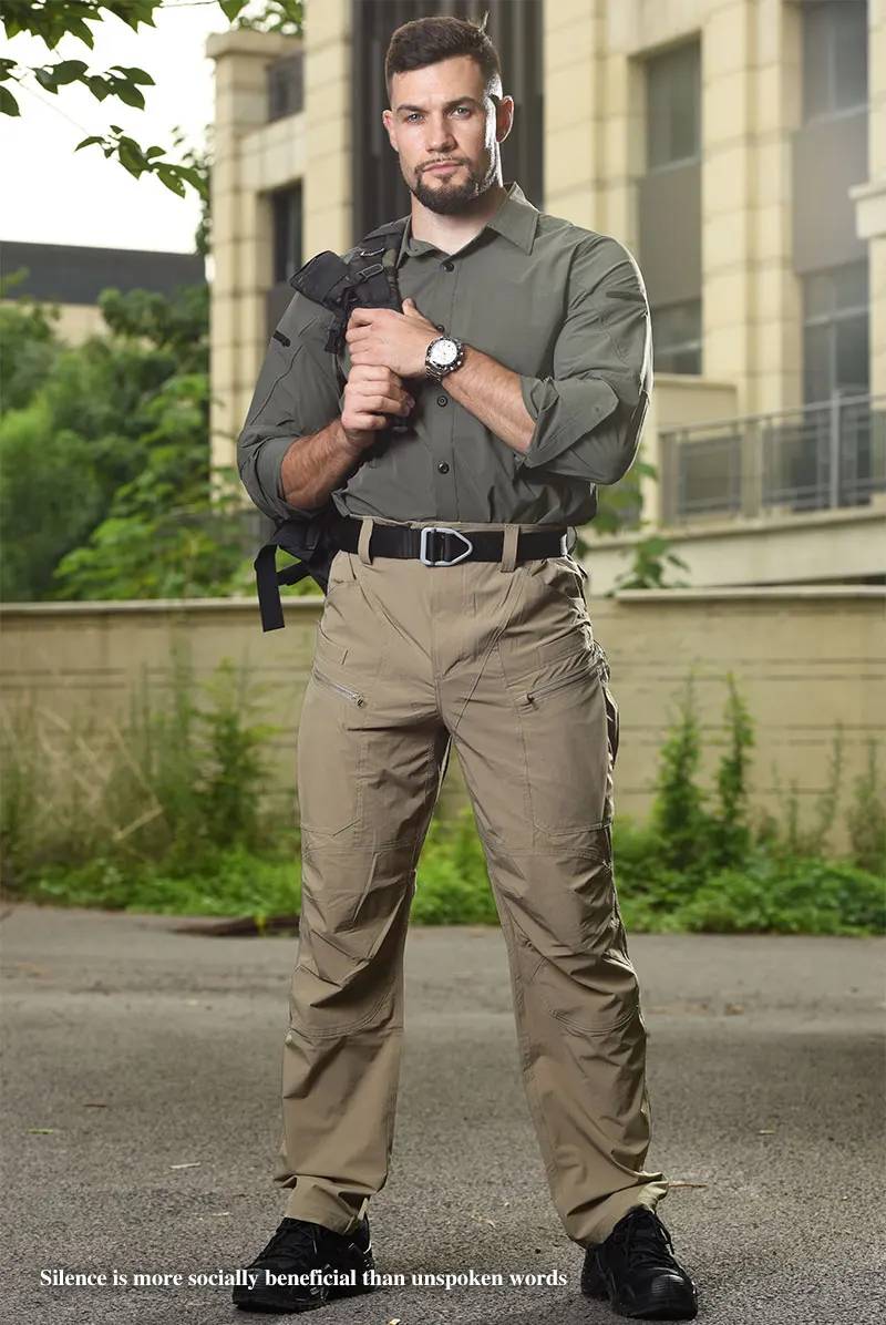 Pantalones informales ligeros del ejército, pantalones largos impermeables de secado rápido, pantalones tácticos para acampar, pantalones militares de trabajo para hombres, transpirablesMaterial: Nylon y spandex