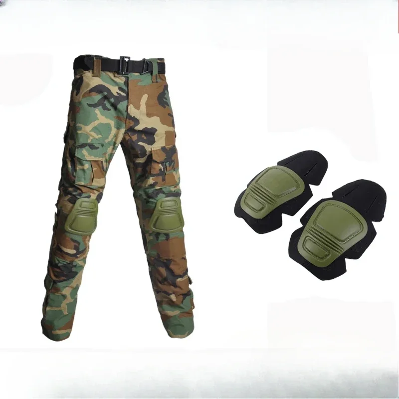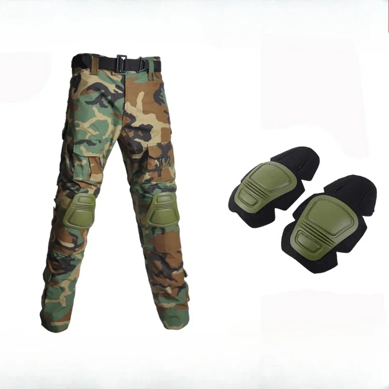 Pantalones de combate para hombre + rodilleras, pantalones tácticos, pantalones de camuflaje para senderismo, ropa de trabajo y caza, resistente al desgaste con múltiples bolsillos