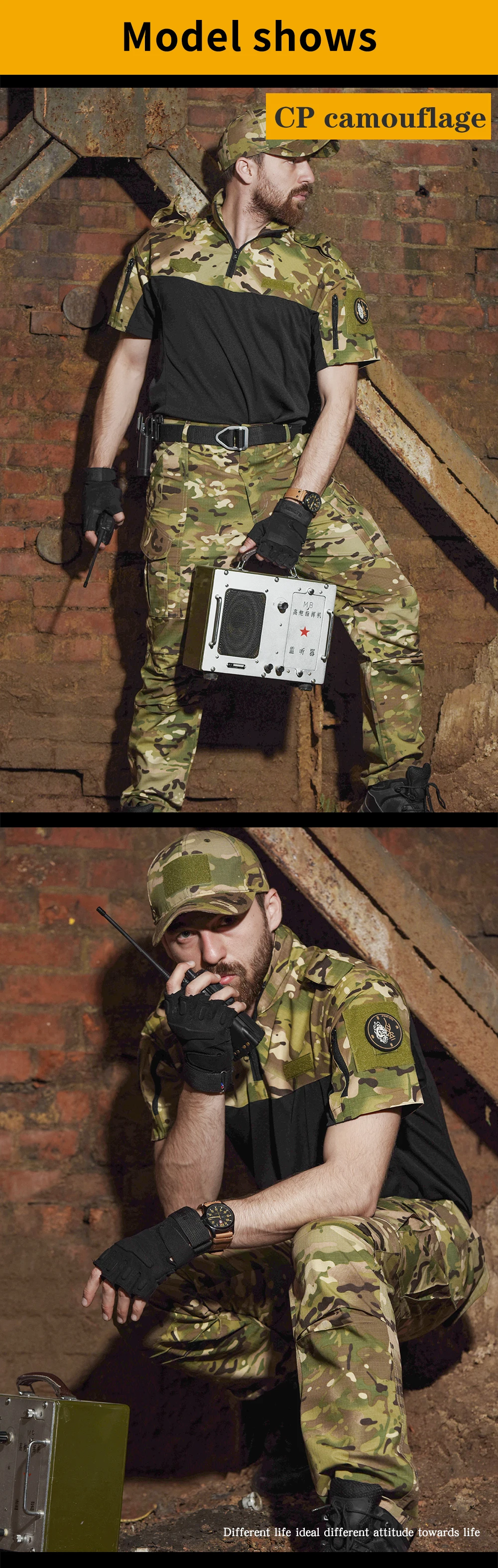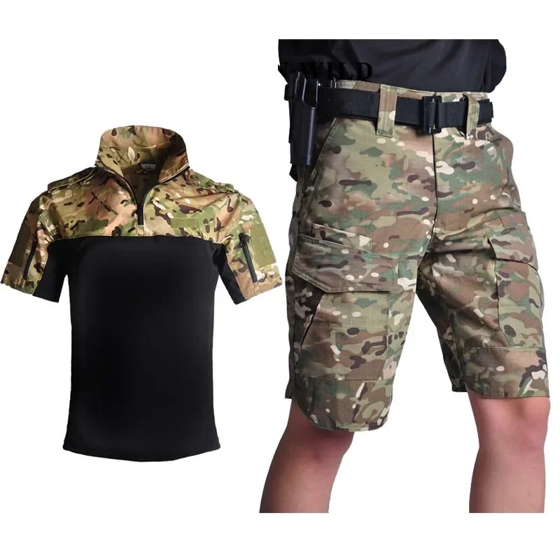 Pantalones cortos Cargo para hombre, trajes de camuflaje, pantalones cortos informales de algodón de verano para hombre y camisa, ropa del ejército, pantalones cortos de carga de senderismo de camuflaje para hombre