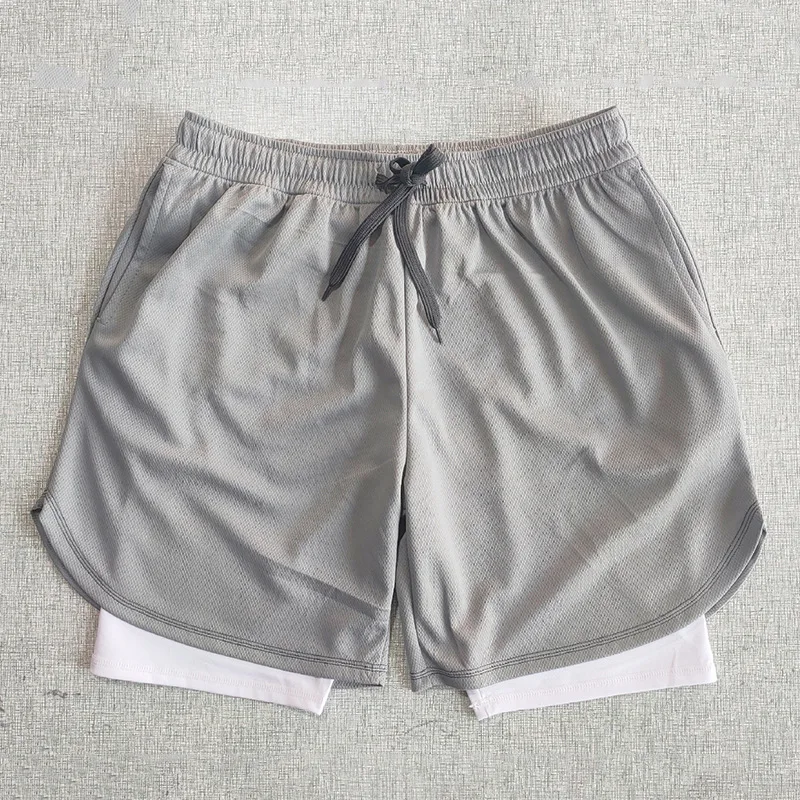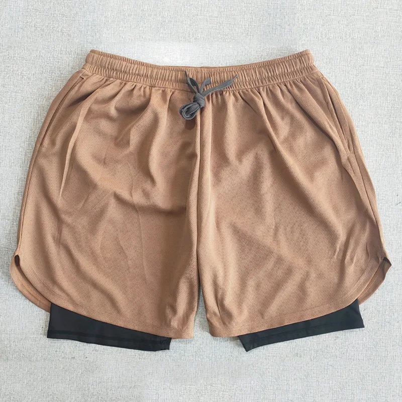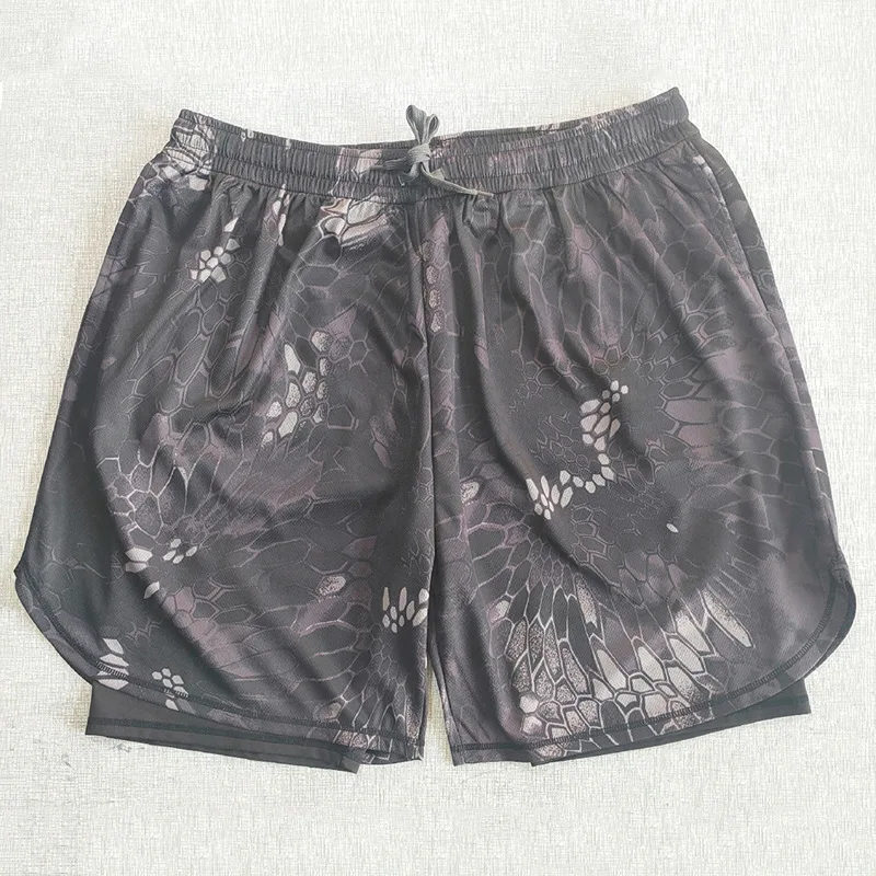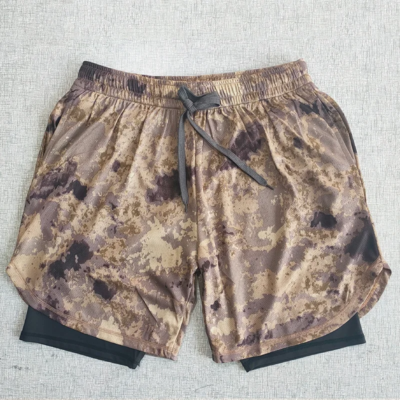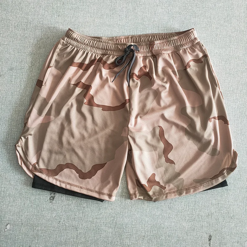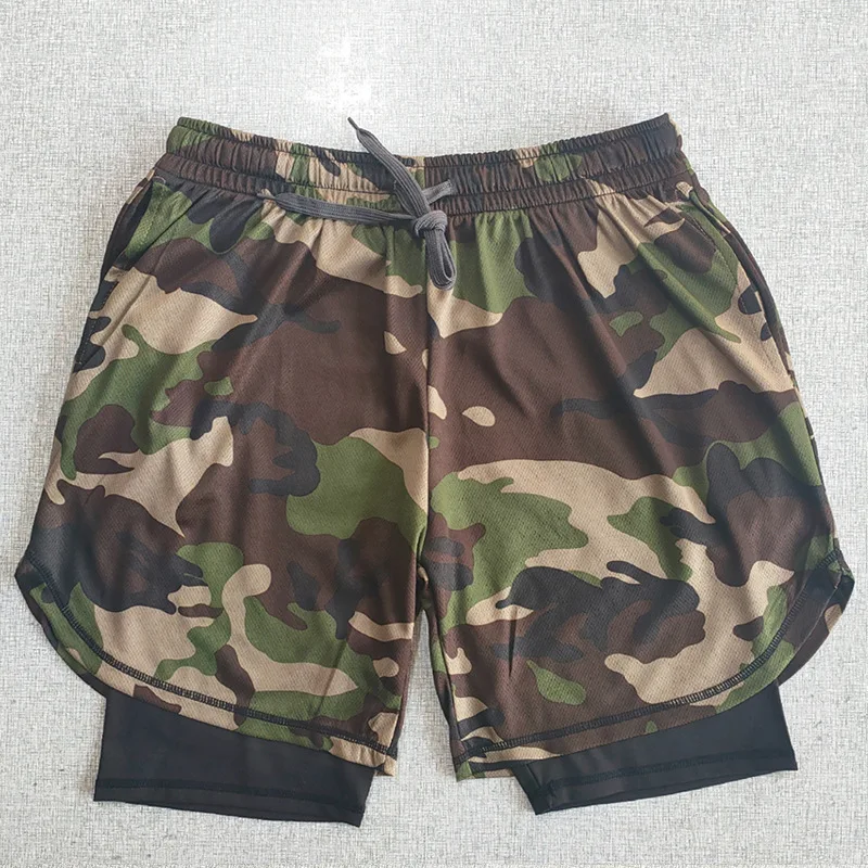 Pantalones cortos de camuflaje 2 en 1 para correr, Fitness, deportes, para hombre, de verano, finos, de secado rápido, elásticos, transpirables, para entrenamiento de senderismo al aire libre, para hombre