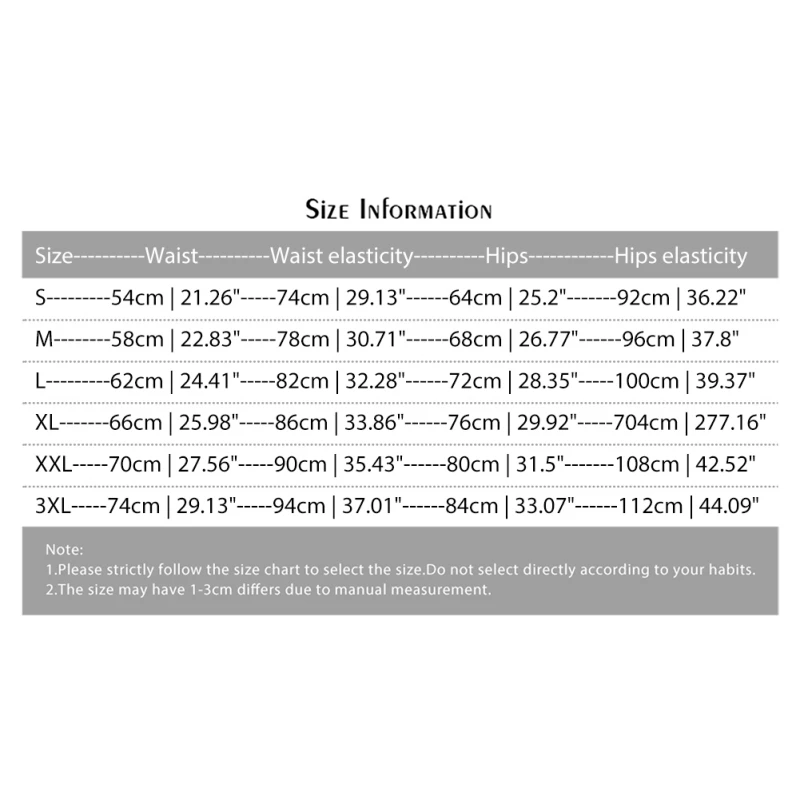 Tamaño---------cintura----------Elasticidad de la cintura-----Caderas------------Elasticidad de las caderas