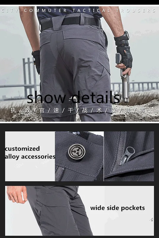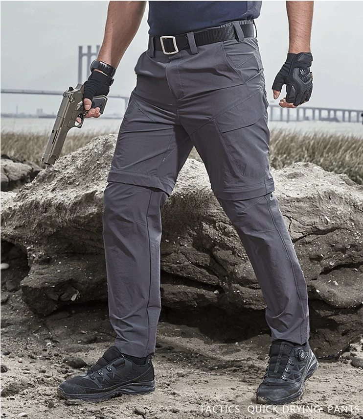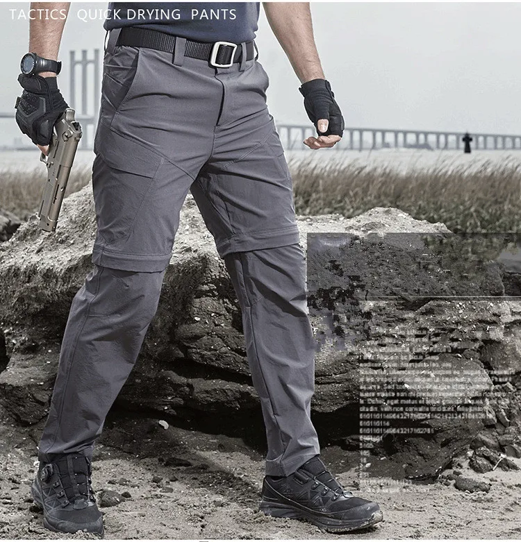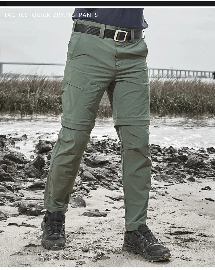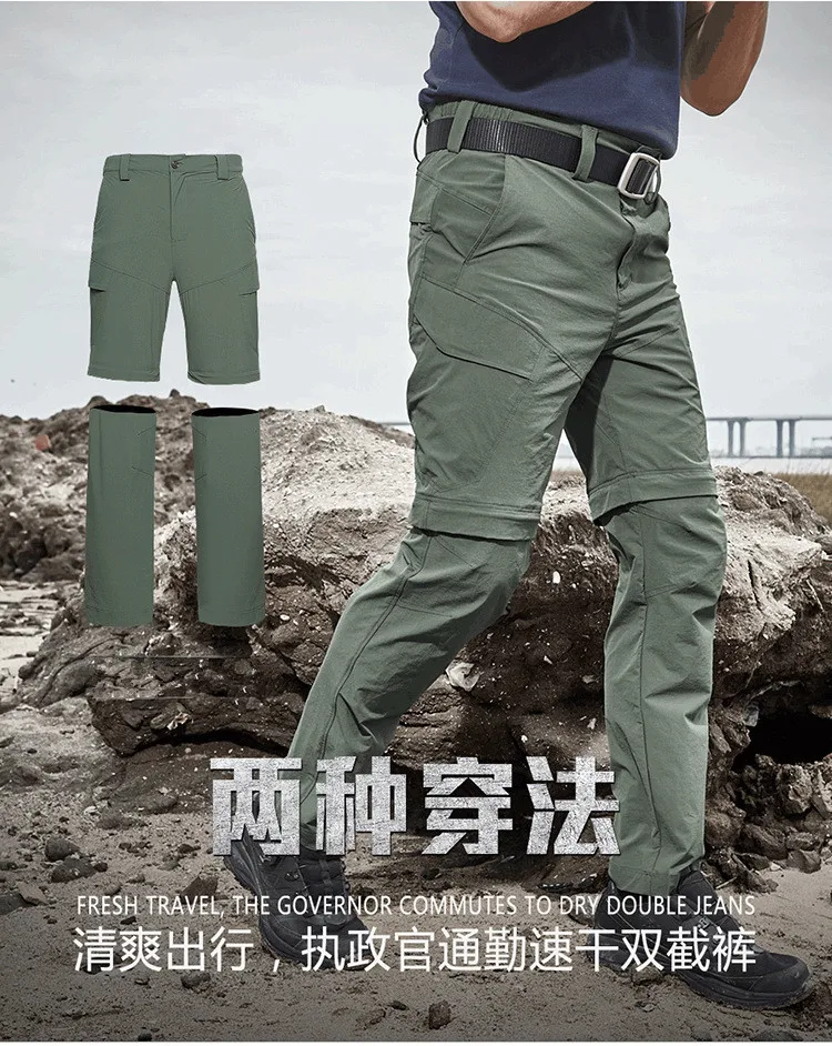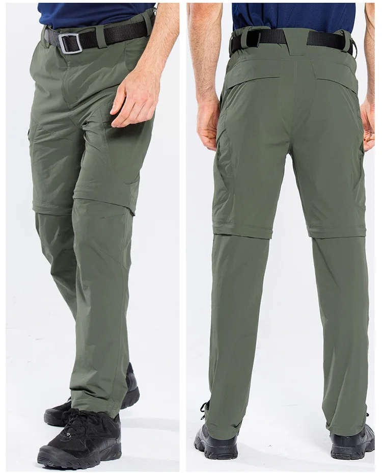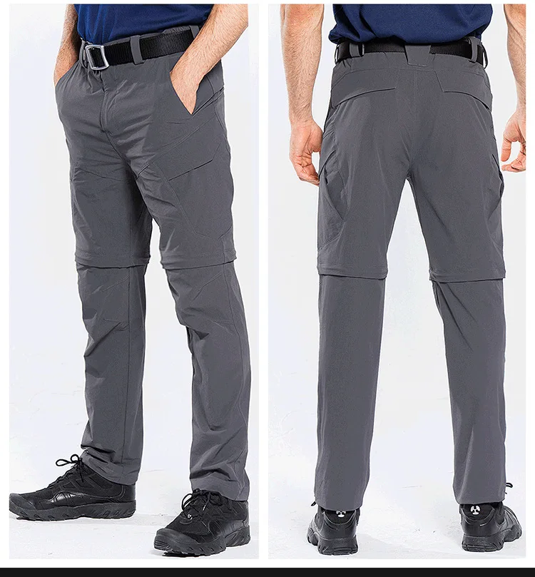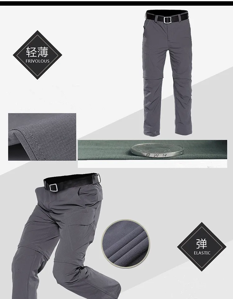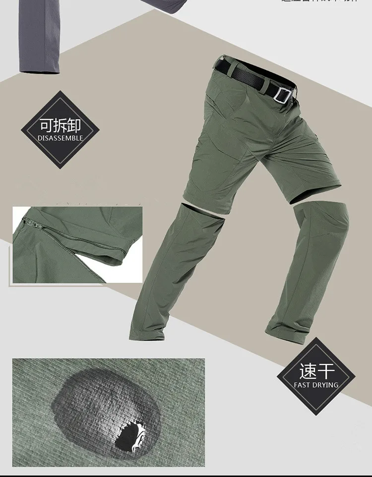 Pantalones deportivos de secado rápido para hombre, pantalones de dos secciones extraíbles, finos, transpirables, elásticos, para senderismo