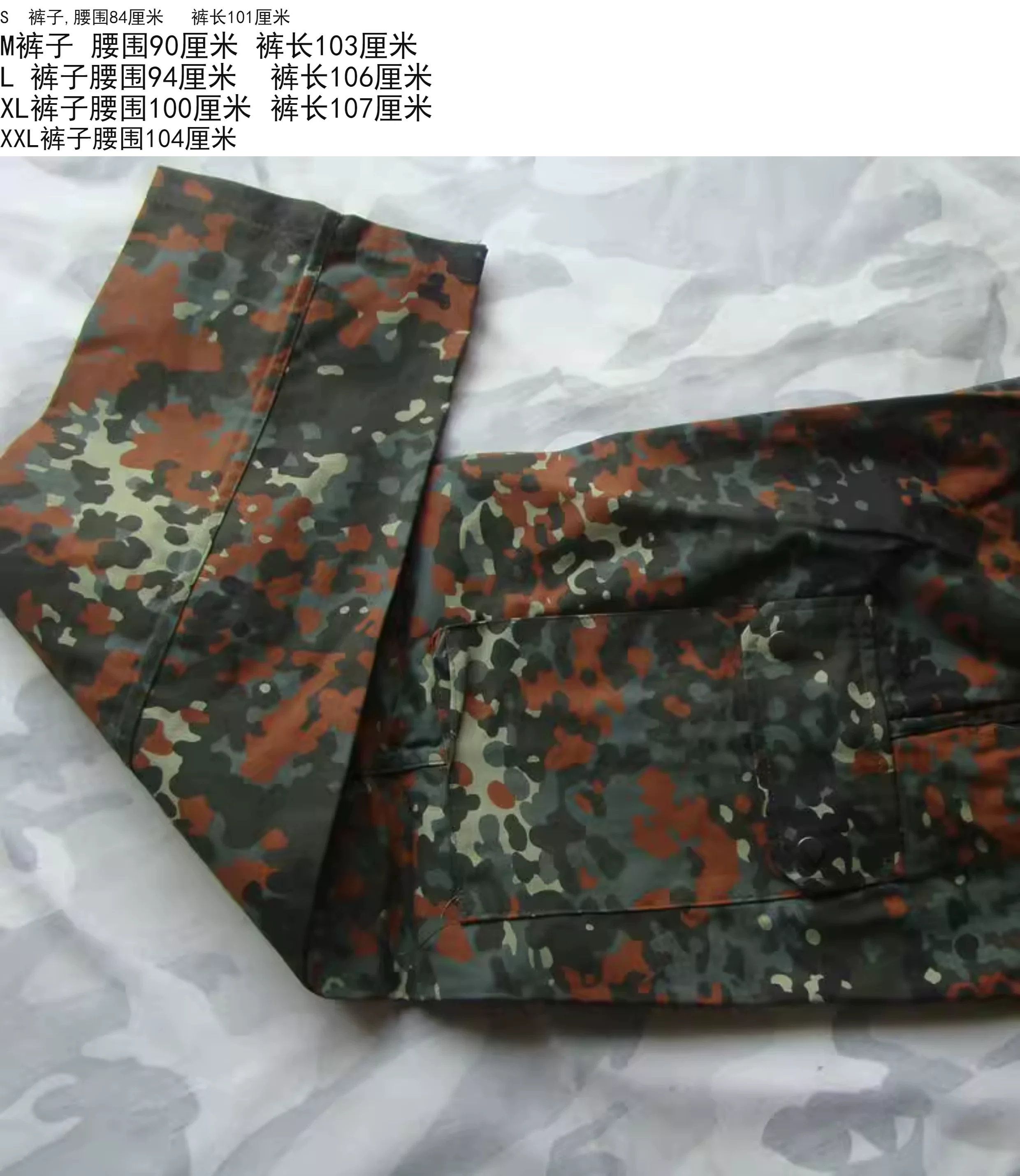 Los pantalones de talla XXL tienen una circunferencia de cintura de 104 centímetros.