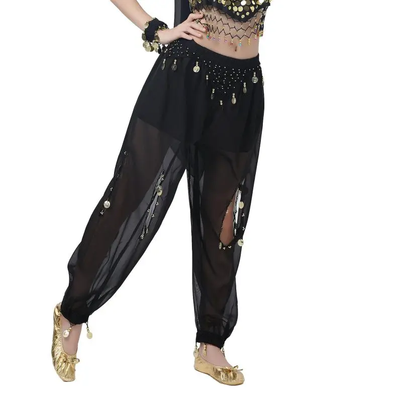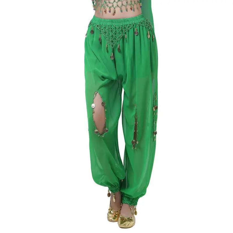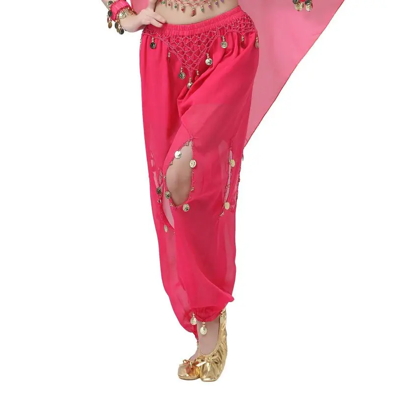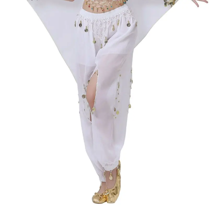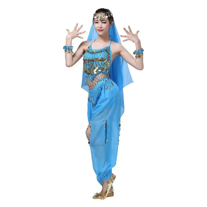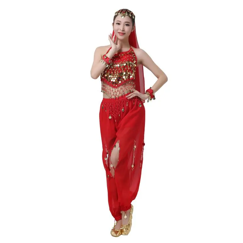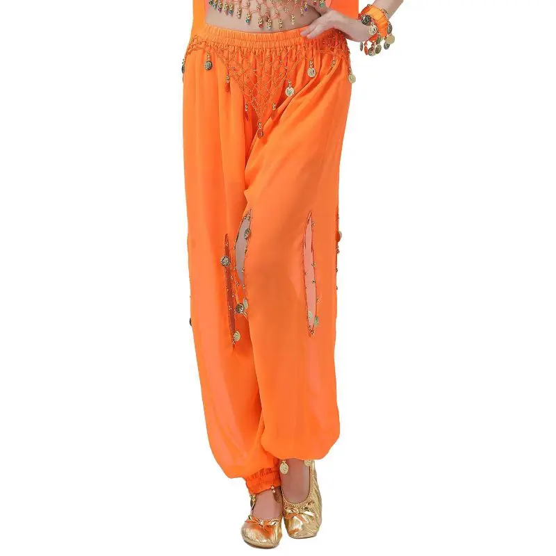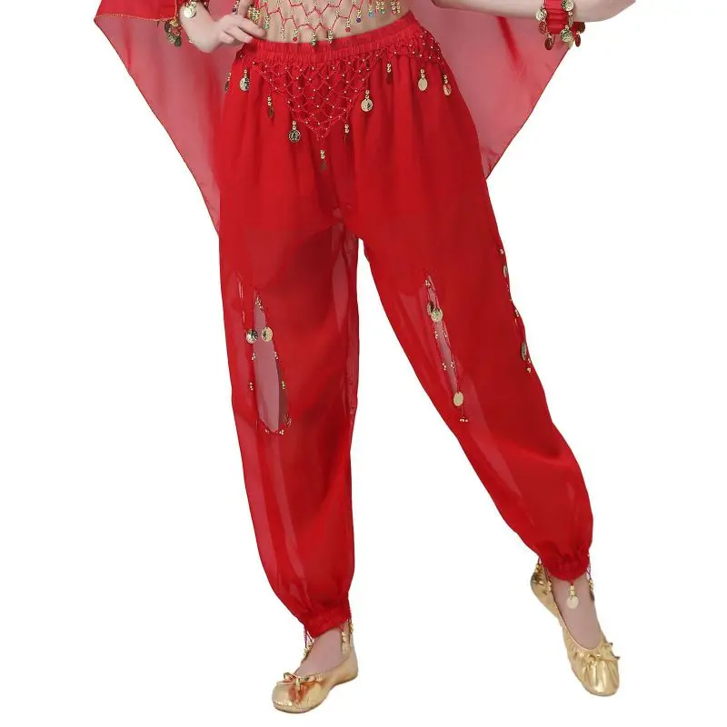 Un par de pantalones de danza del vientre para mujer o un par de top de danza del vientre para mujer + pantalones + pañuelo colgante para monedas + pulsera