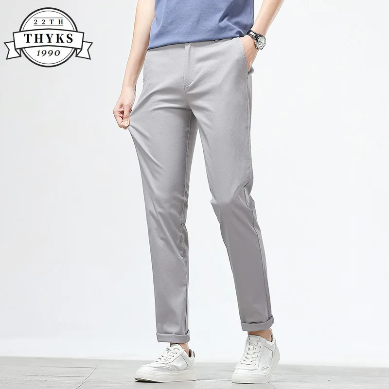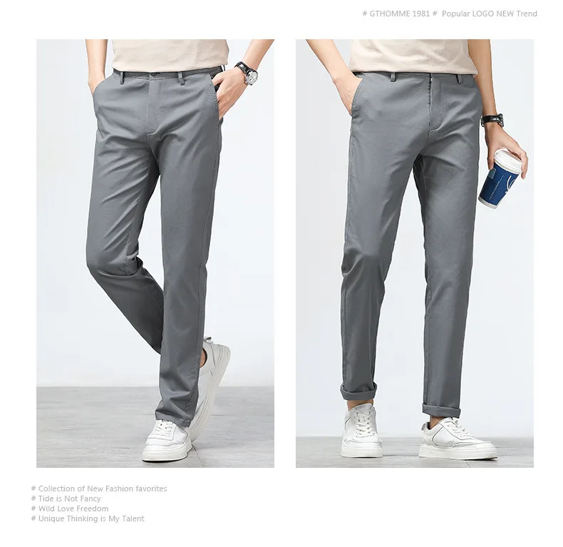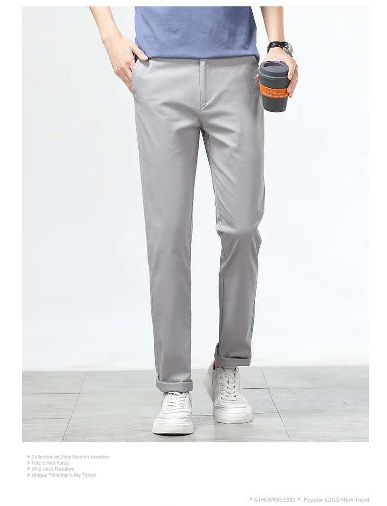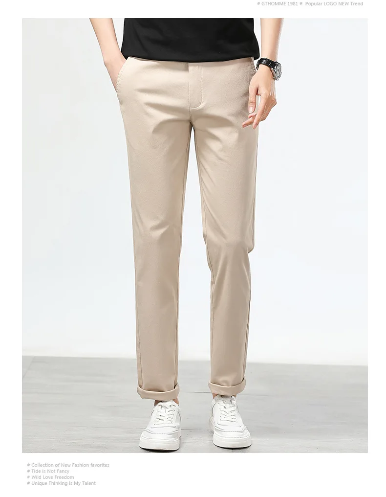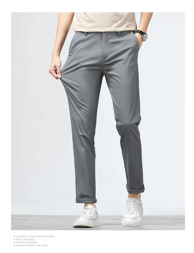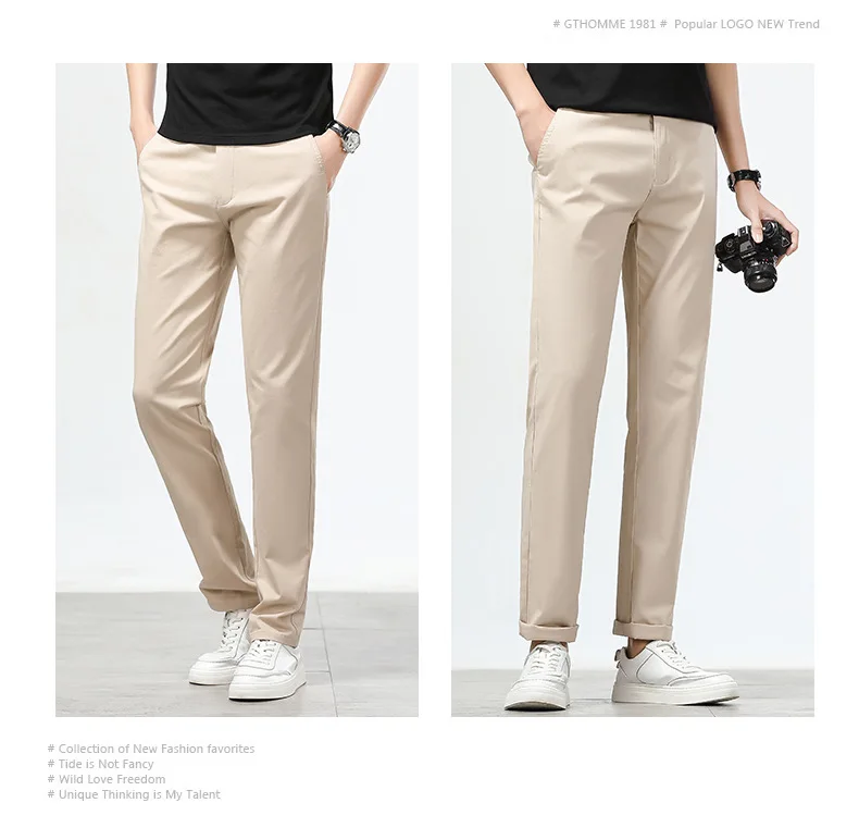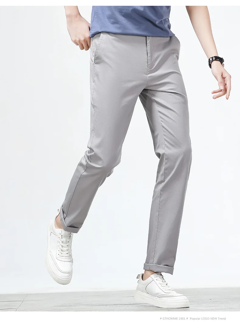Pantalones informales para hombre, Pantalón de algodón elástico, holgado, recto, transpirable, para oficina y negocios, novedad de verano