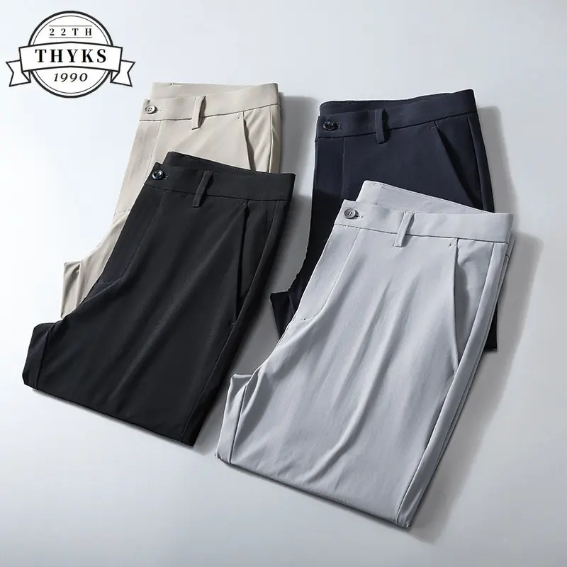 Pantalones informales para hombre, pantalón de seda fina de hielo, secado rápido, negocios, ocio, recto, diario, Cargo, holgado, Verano