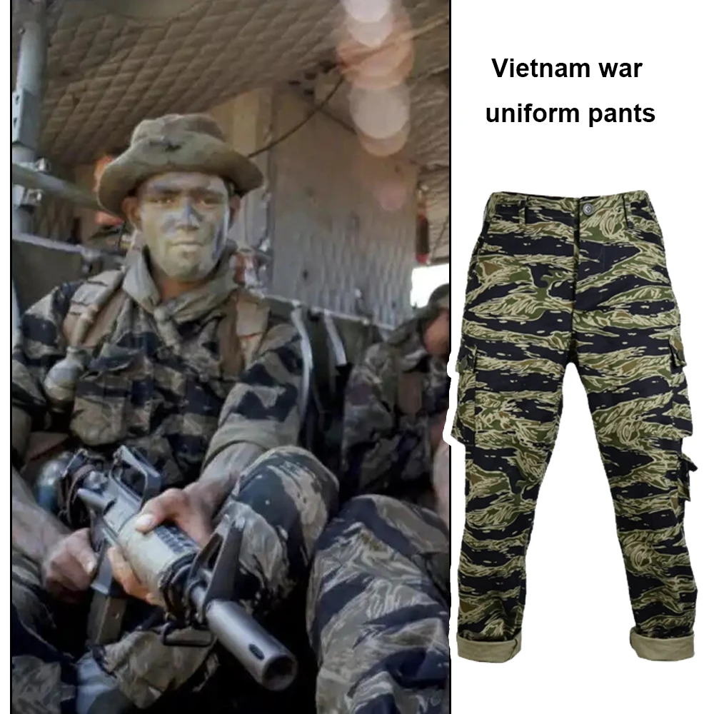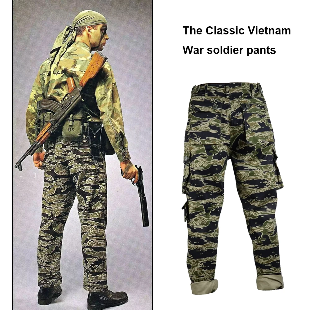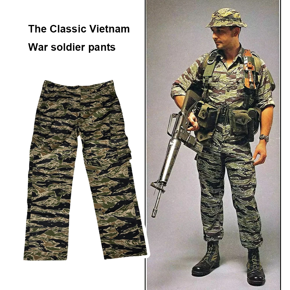 Pantalones de la Segunda Guerra Mundial de EE. UU., pantalones de camuflaje con punto de tigre para hombres, ropa de exterior de camuflaje de guerra Vetnam de la Segunda Guerra Mundial, pantalones deportivos de entrenamiento Retro TCU