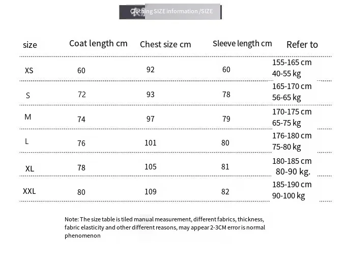 Talla: S M L XL XXL XXXL