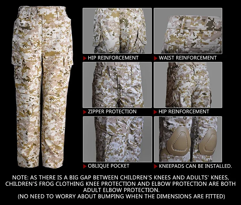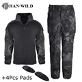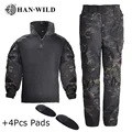 Pantalones para niños, trajes tácticos, traje de camuflaje, uniforme de combate táctico, sudaderas, conjuntos de entrenamiento + almohadillas, ropa de caza