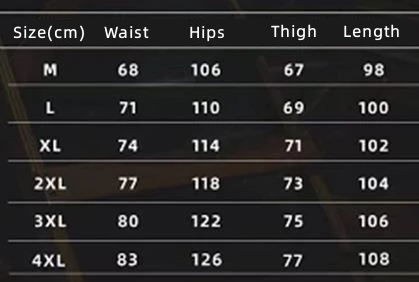 La Tabla de tallas es la siguiente, elige según el tamaño de tu cuerpo. Hay un margen de error de 1-2cm, si no está seguro del tamaño, envíeme la información de su altura, peso y cintura, le ayudaré a elegir la talla correcta.