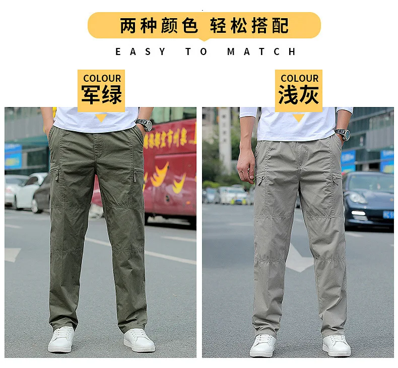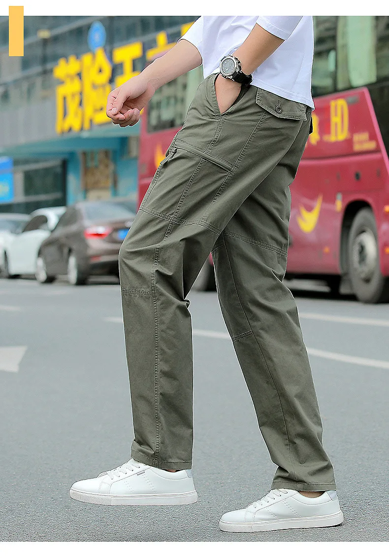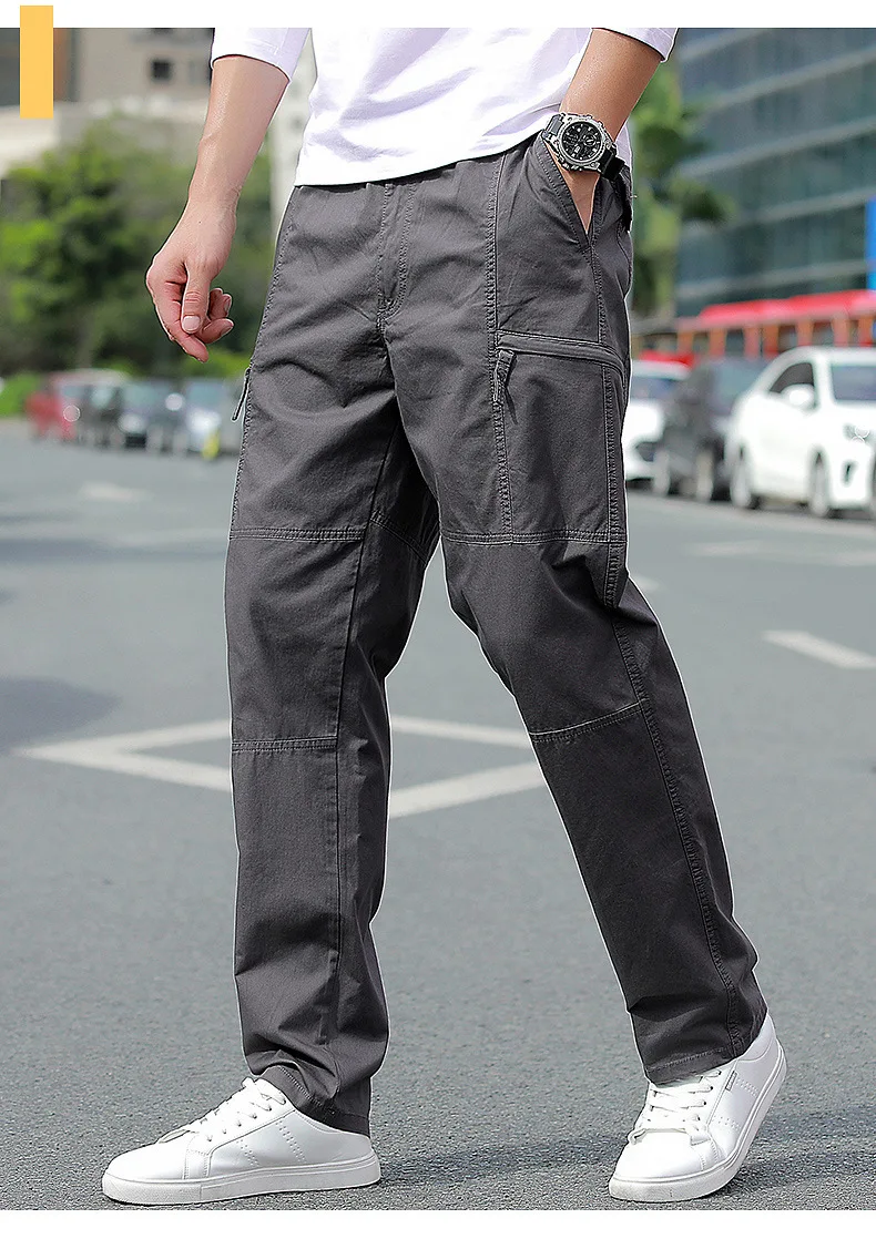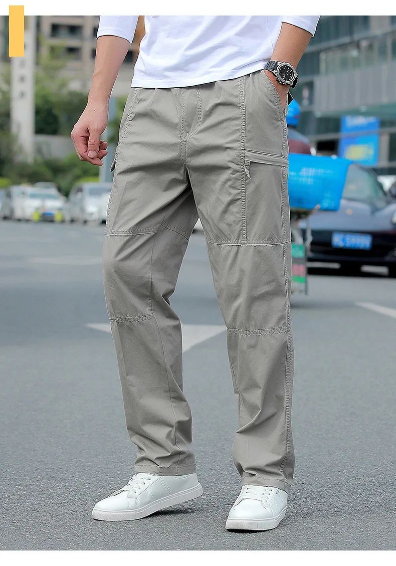 Pantalones rectos de algodón con múltiples bolsillos para hombre, pantalones finos, transpirables, resistentes al desgaste, senderismo, Camping, pesca, escalada, exteriores