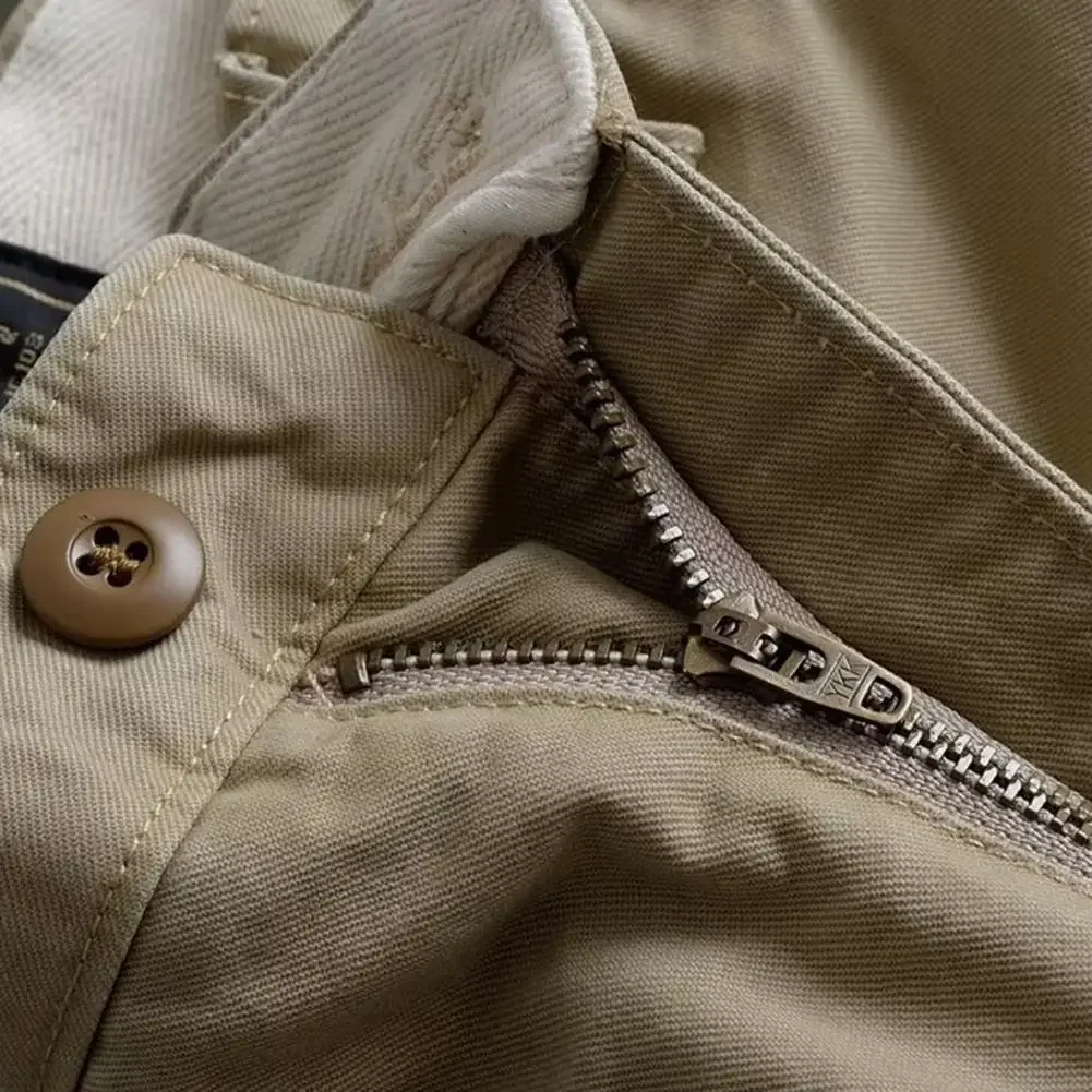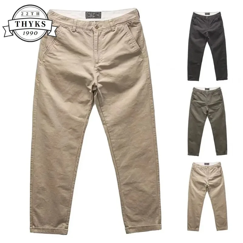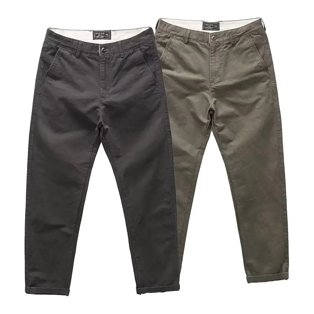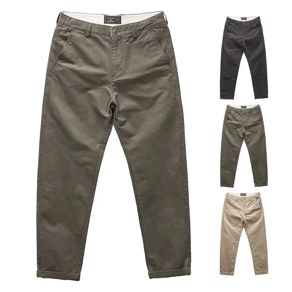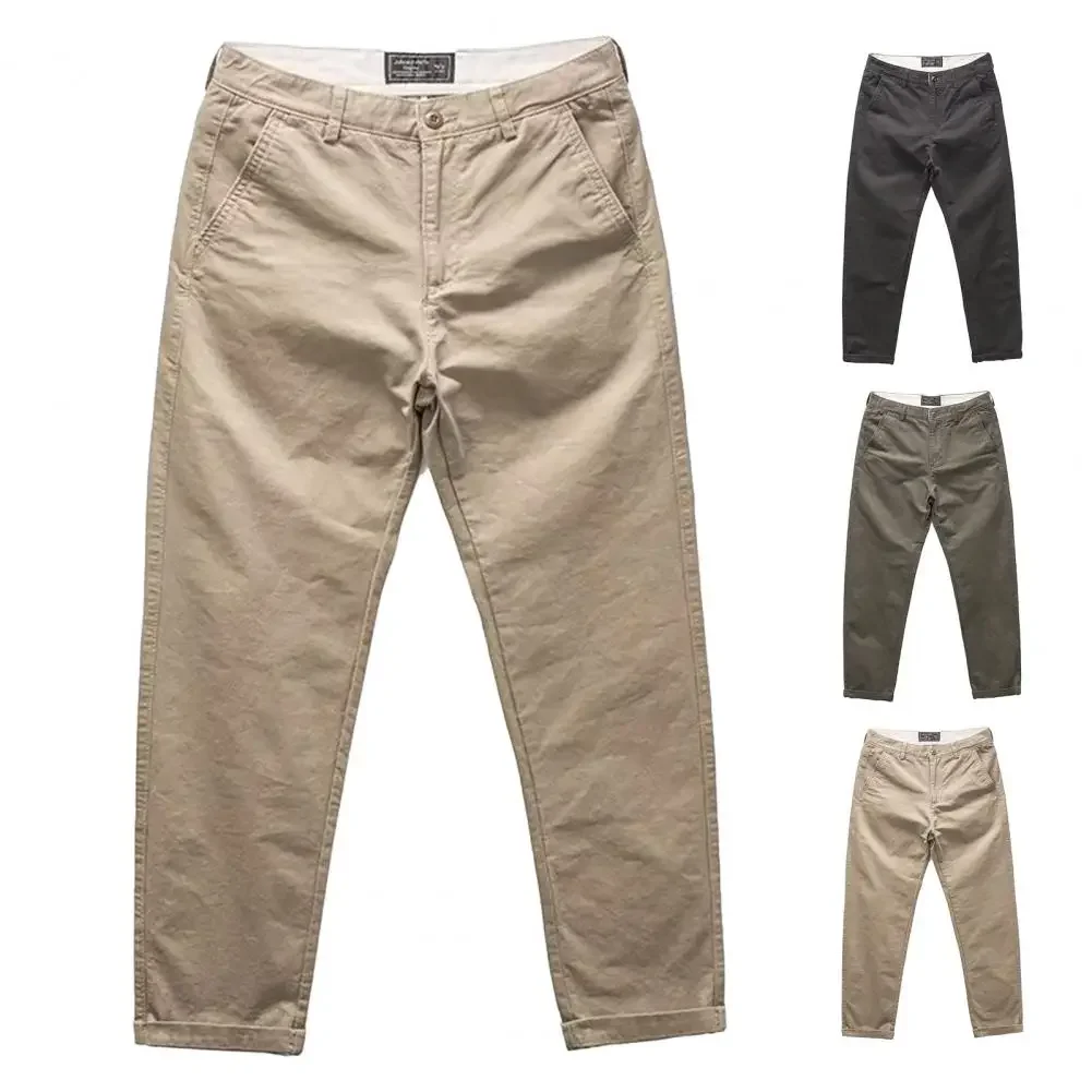 Pantalones rectos Vintage para hombre, pantalón de carga con cremallera y botón lavado, ropa de calle informal para oficina y negocios, color liso
