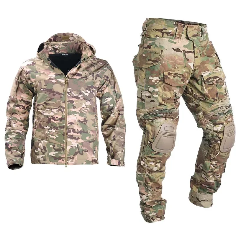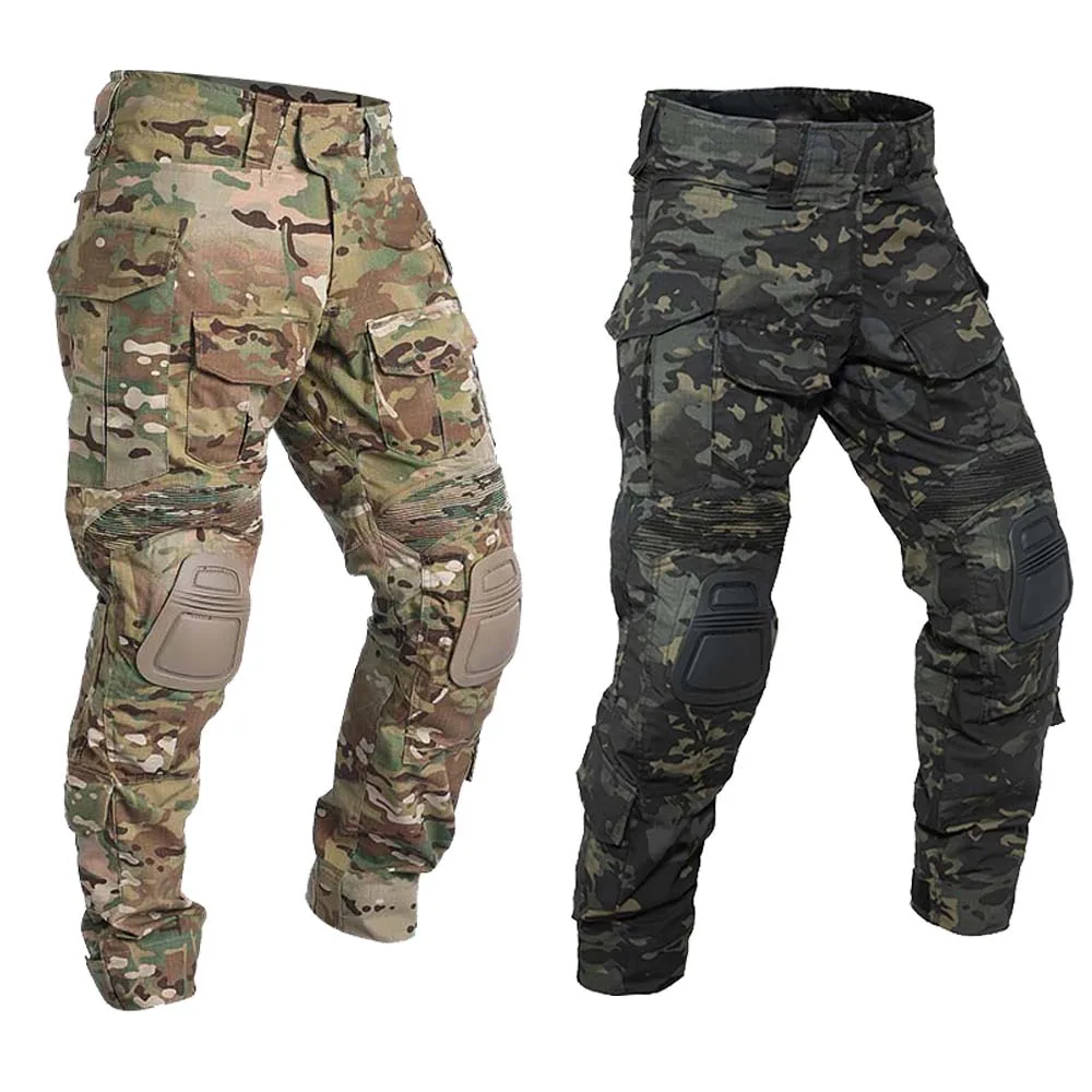 Pantalones resistentes al desgaste, uniformes para hombres, trajes de combate verdes de camuflaje, chaquetas tácticas, pantalones Cargo + almohadillas, ropa de caza y acampada