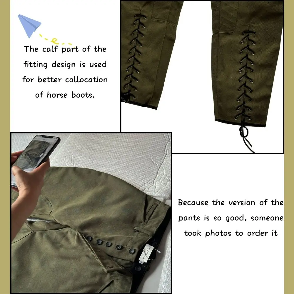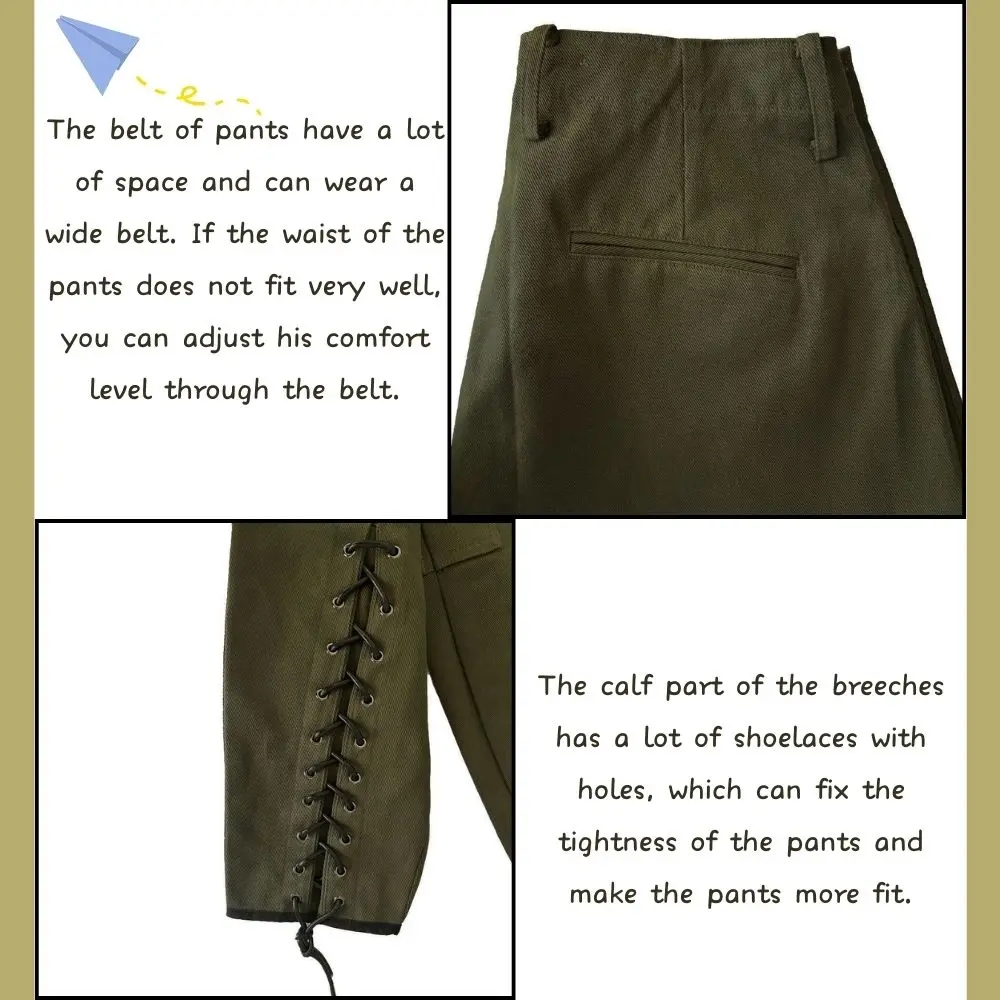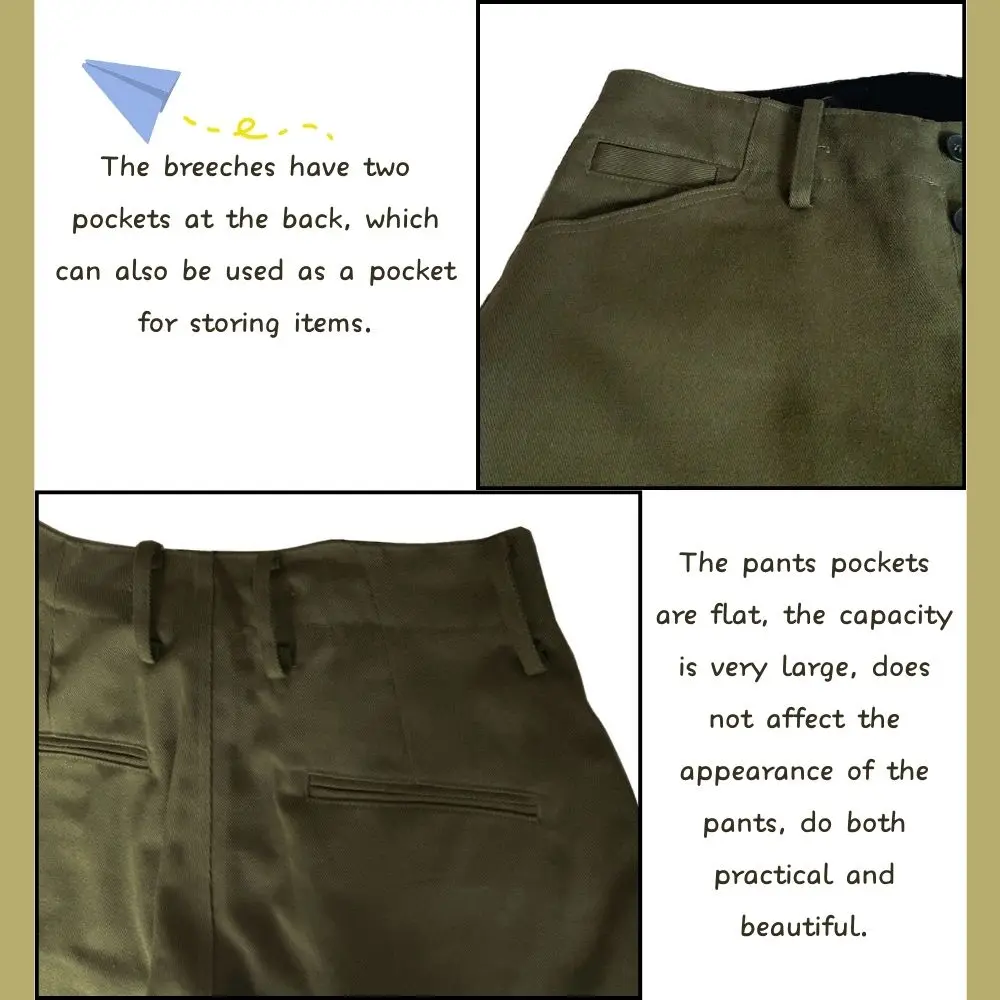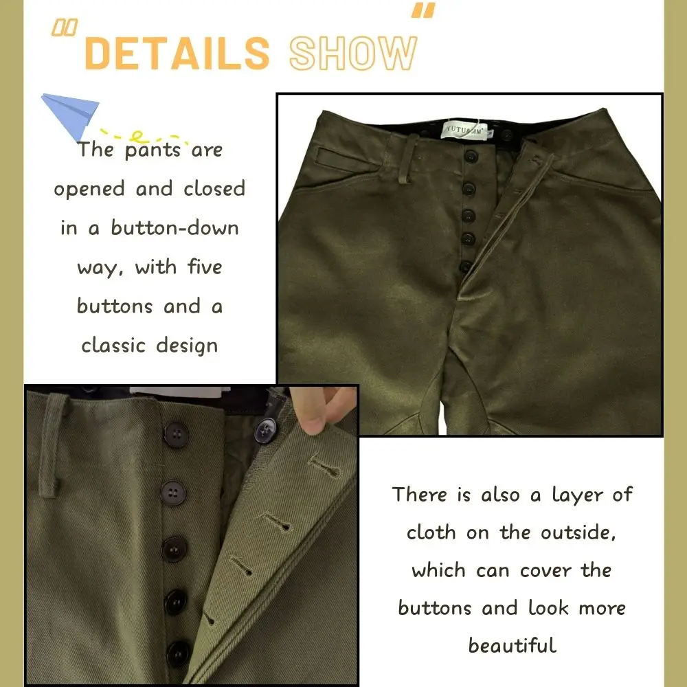 Basado en la caballería de La Segunda Guerra Mundial, los pantalones modificados son de nueve de longitud y tienen mallas de pantorrilla. Los fanáticos a los que les gusta repetir la historia no pueden comprar Los leggings solos, mostrando un diseño retro. La longitud de la talla de los pantalones es pura medición manual, porque los diferentes métodos de medición pueden tener un error de datos de 1-3cm, que pertenece al rango normal, no se preocupe.