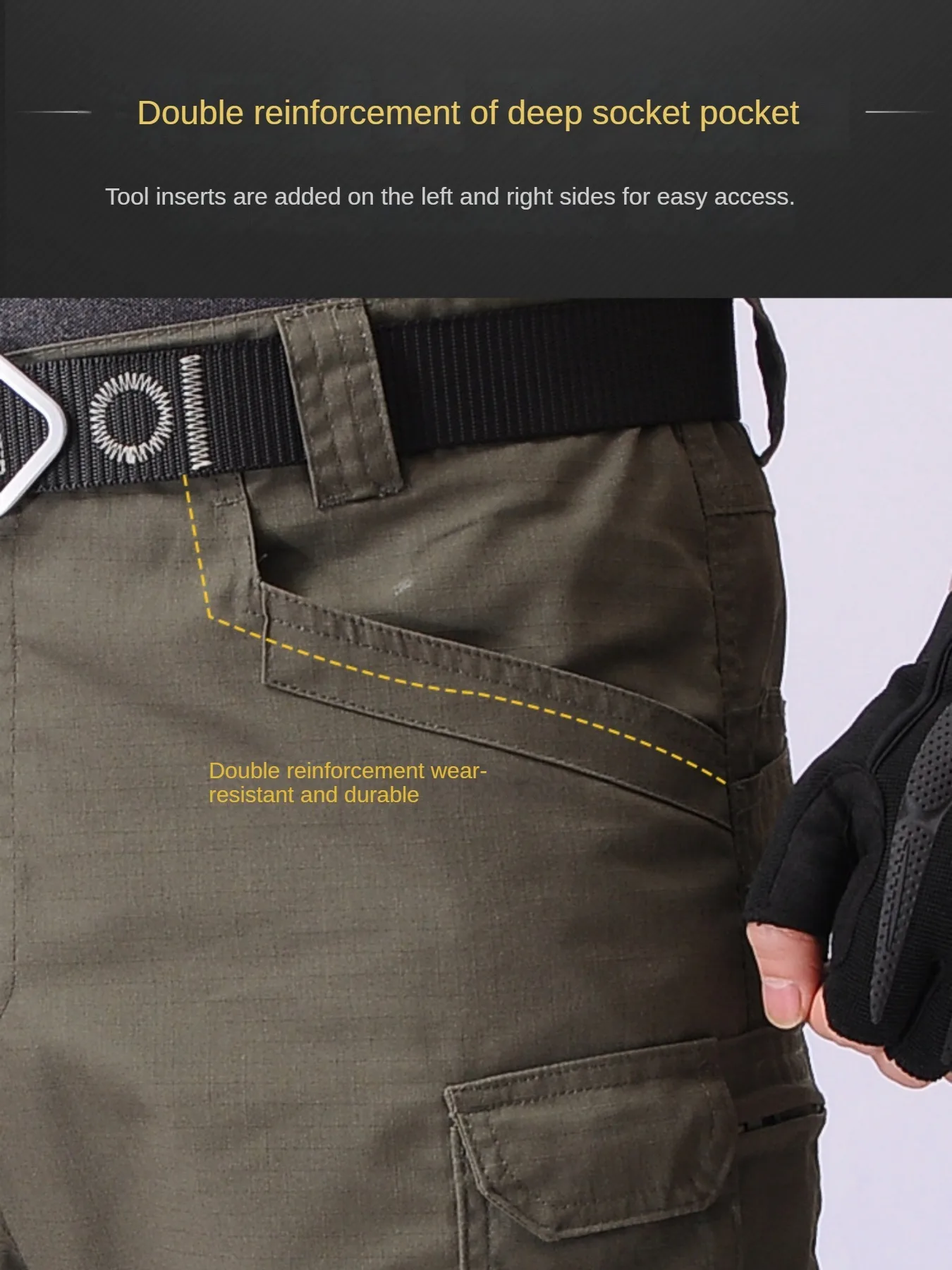 Nuestros pantalones vienen con múltiples bolsillos que proporcionan una amplia capacidad de almacenamiento para todos sus elementos esenciales. Los bolsillos están diseñados para mantener sus pertenencias seguras, lo que le permite concentrarse completamente en sus actividades. El estilo militar delgado de nuestros pantalones te hará lucir elegante, ya sea que estés caminando, acampando o participando en cualquier otra actividad al aire libre.